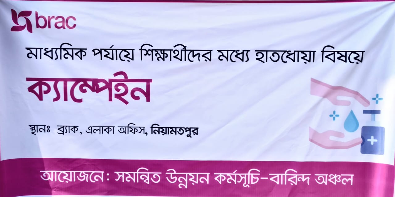 নওগাঁ জেলার নিয়ামতপুর উপজেলার শালবাড়ি উচ্চ বিদ্যালয়ে মাধ্যমিক পর্যায়ের শিক্ষার্থীদের স্বাস্থ্য সচেতনতা বৃদ্ধির লক্ষ্যে অনুষ্ঠিত হলো হাত ধোয়া বিষয়ক বিশেষ ক্যাম্পেইন। এ ক্যাম্পেইনটির আয়োজন করে সমন্বিত উন্নয়ন কর্মসূচি, বারিন্দ্র অঞ্চল। বর্তমান প্রেক্ষাপটে পরিচ্ছন্নতা ও স্বাস্থ্যবিধি মেনে চলার গুরুত্ব বিবেচনায় শিক্ষার্থীদের মধ্যে এমন সচেতনতামূলক কার্যক্রম আয়োজন অত্যন্ত ফলপ্রসূ হয়ে উঠেছে।অনুষ্ঠানে সভাপতি হিসেবে উপস্থিত ছিলেন শালবাড়ি উচ্চ বিদ্যালয়ের ভারপ্রাপ্ত প্রধান শিক্ষক, যিনি তার বক্তব্যে বলেন, নিয়মিত ও সঠিকভাবে হাত ধোয়া শুধু ব্যক্তিগত স্বাস্থ্য সুরক্ষাই নয়, বরং পরিবার ও সমাজকে রোগব্যাধির ঝুঁকি থেকে রক্ষা করে। তিনি শিক্ষার্থীদের হাত ধোয়ার অভ্যাসকে দৈনন্দিন জীবনের অবিচ্ছেদ্য অংশ করে তুলতে উৎসাহিত করেন।এছাড়া শালবাড়ি উচ্চ বিদ্যালয়ের সকল শিক্ষক-শিক্ষিকা ও কর্মচারীবৃন্দ সক্রিয়ভাবে অনুষ্ঠানে অংশগ্রহণ করেন এবং শিক্ষার্থীদের সচেতন করতে সহযোগিতা প্রদান করেন। বিদ্যালয়ের শিক্ষকরা শিক্ষার্থীদের উদ্দেশে বলেন, হাত ধোয়ার মতো ছোট একটি অভ্যাস জীবাণু প্রতিরোধে বড় ভূমিকা রাখতে পারে।ব্র্যাক অফিস, নিয়ামতপুর, নওগাঁ-এর সৌজন্যে অনুষ্ঠানে বিশেষ অতিথি হিসেবে উপস্থিত ছিলেন সাহিদা হুসাইন নিশি,প্রোগ্রাম অর্গানাইজার ড্যানিয়েল মরমু,প্রোগ্রাম অর্গানাইজারঅতিথিবৃন্দ শিক্ষার্থীদের হাতে-কলমে হাত ধোয়ার সঠিক পদ্ধতি প্রদর্শন করেন এবং জীবাণু কীভাবে ছড়ায় এবং কীভাবে হাত ধোয়ার মাধ্যমে এসব জীবাণু প্রতিরোধ করা সম্ভব সে বিষয়ে বিস্তারিত আলোচনা করেন। শিক্ষার্থীরা আগ্রহ সহকারে সকল কার্যক্রমে অংশ নেয় এবং বাস্তব অভিজ্ঞতার মাধ্যমে স্বাস্থ্যবিধির গুরুত্ব উপলব্ধি করে।ক্যাম্পেইনে ধাপে ধাপে হাত ধোয়ার নিয়ম, সাবান বা হ্যান্ডওয়াশের সঠিক ব্যবহার, খাবার গ্রহণের আগে-পরে, টয়লেট ব্যবহারের পর এবং বাইরে থেকে এসে হাত ধোয়ার গুরুত্ব তুলে ধরা হয়। শিক্ষার্থীদের মাঝে স্বাস্থ্যবিষয়ক কিছু সচেতনতামূলক উপকরণও বিতরণ করা হয়।অনুষ্ঠানের সমাপনীতে আয়োজকরা বলেন, শিক্ষার্থীদের মধ্যে পরিচ্ছন্নতা ও স্বাস্থ্য সচেতনতার অভ্যাস গড়ে তুলতে ভবিষ্যতেও এ ধরনের কার্যক্রম অব্যাহত থাকবে। তারা আশা প্রকাশ করেন,এই ক্যাম্পেইনের মাধ্যমে শিক্ষার্থীরা নিজ নিজ পরিবার ও সমাজেও স্বাস্থ্য সচেতনতার বার্তা ছড়িয়ে দিতে সক্ষম হবে।এ ক্যাম্পেইনটি শালবাড়ি উচ্চ বিদ্যালয়ের শিক্ষার্থীদের জন্য একটি গুরুত্বপূর্ণ শিক্ষামূলক অভিজ্ঞতা হিসেবে বিবেচিত হচ্ছে এবং স্থানীয়ভাবে স্বাস্থ্য সচেতনতা বৃদ্ধিতে ইতিবাচক প্রভাব ফেলবে বলে সকল অংশগ্রহণকারী আশা