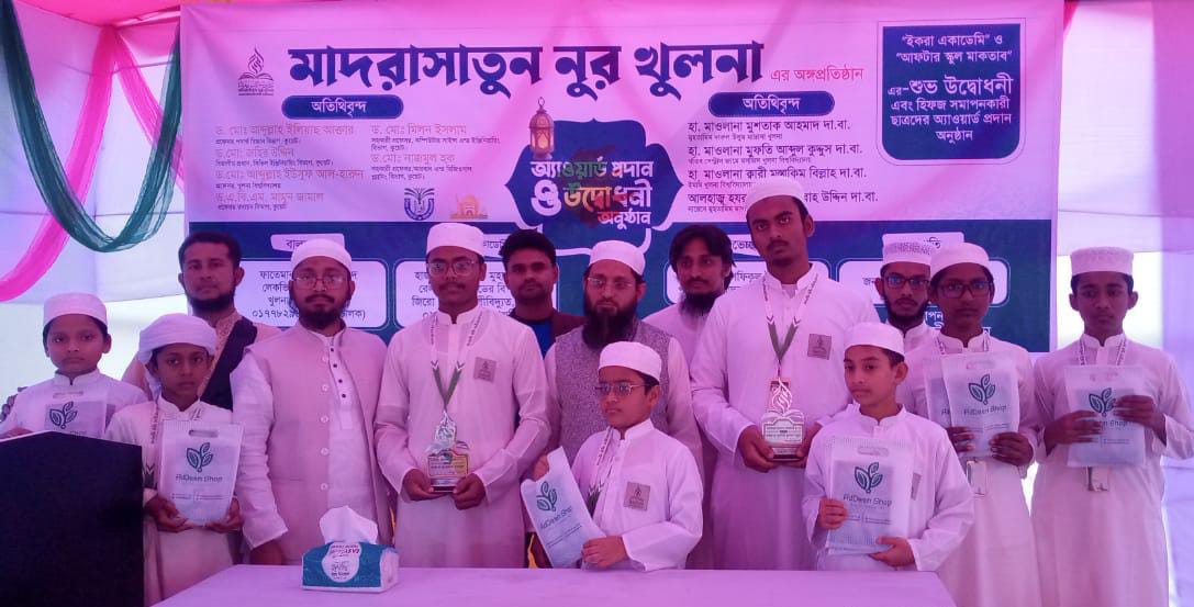 ইকরা একাডেমি"আফটার স্কুল মাকতাব" এর শুভ উদ্বোধনী ও মাদরাসাতুন নুর খুলনা এর হিফজ সমাপনকারী ছাত্রদের অ্যাওয়ার্ড প্রদান করা হয়।