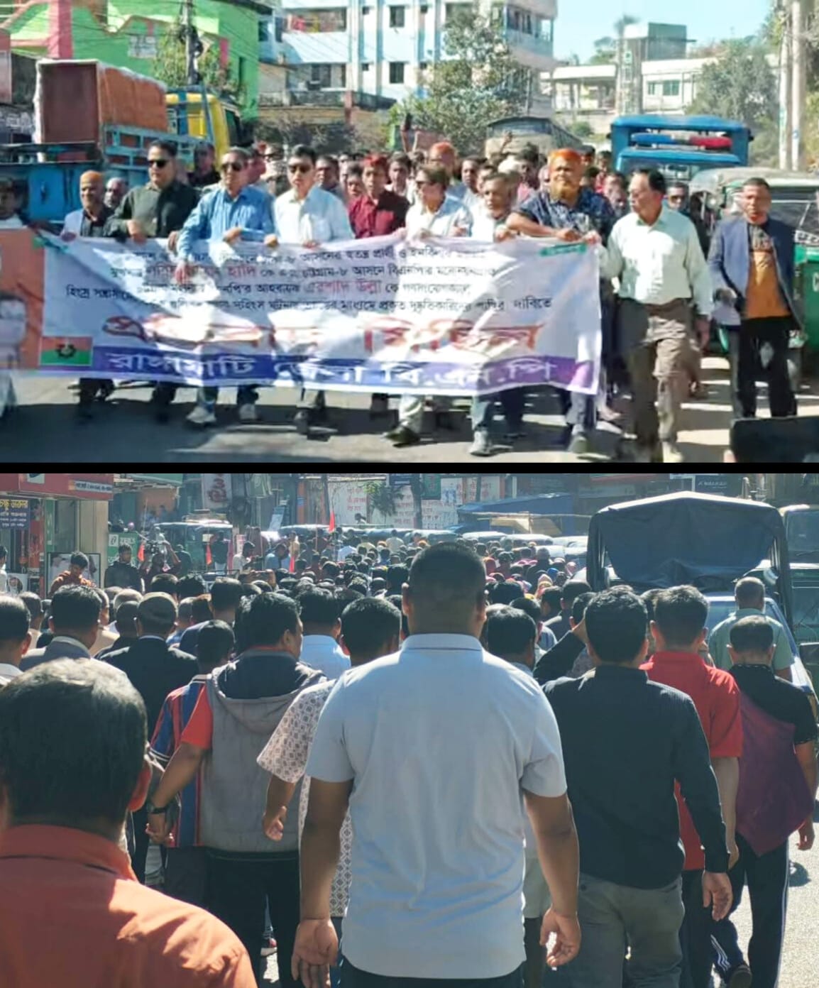 ওসমান হাদি ও এরশাদ উল্লাহর ওপর হামলার প্রতিবাদে রাঙামাটিতে বিএনপির বিক্ষোভ