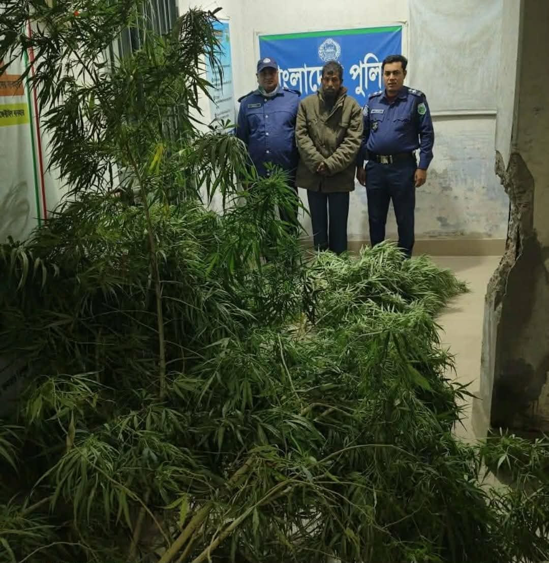 রাজশাহীর বাঘা থানার পুলিশ অবৈধ নেশাজাতীয় মাদকদ্রব্য নির্মূলে ধারাবাহিক অভিযানের অংশ হিসেবে নিষিদ্ধ গাঁজার গাছ চাষের অভিযোগে একজনকে গ্রেপ্তার করেছে।অভিযানসূত্রে জানা যায়, বৃহস্পতিবার (১২ ডিসেম্বর ২০২৫) রাতে অফিসার ইনচার্জ সেরাজুল হকের দিকনির্দেশনায় এসআই তুহিনের নেতৃত্বে এসআই প্রদ্যুৎ কুমার প্রামাণিক ও সঙ্গীয় ফোর্স বাঘা পৌরসভার চকছাতারি এলাকায় অভিযান পরিচালনা করেন। এতে গোপন তথ্যের ভিত্তিতে মৃত রহিম উদ্দিনের পুত্র হাফিজুল ইসলাম (৪০)-এর বাড়িতে অভিযান চালানো হয়। এ সময় তার দেখানো ও স্বীকারোক্তির ভিত্তিতে বাড়ি থেকে একটি নিষিদ্ধ গাঁজার গাছ জব্দ করা হয়।পুলিশ জানায়, হাফিজুল ইসলাম দীর্ঘদিন ধরে নিজ বাড়ির আঙিনায় গাঁজার গাছ রোপণ করে আসছিল। গোপন সূত্রে তথ্য পাওয়ার পরই পুলিশ দ্রুত অভিযান চালিয়ে তাকে আটক করতে সক্ষম হয়। জব্দ করা গাঁজার গাছটি প্রাথমিকভাবে থানায় হেফাজতে রাখা হয়েছে।এ ঘটনায় হাফিজুল ইসলামের বিরুদ্ধে মাদকদ্রব্য নিয়ন্ত্রণ আইনে মামলা করা হয়েছে। বাঘা থানা পুলিশ জানিয়েছে, এলাকায় মাদকবিরোধী অভিযান আরও জোরদার করা হবে এবং মাদক নির্মূলে সর্বসাধারণের সহযোগিতা কামনা করা হয়েছে।