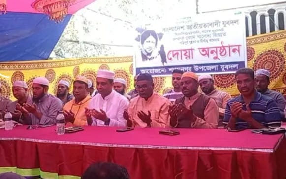 : সাতক্ষীরার শ্যামনগরে উপজেলা যুবদলের আয়োজনে বিএনপির চেয়ারপার্সন সাবেক প্রধানমন্ত্রী দেশনেত্রী বেগম খালেদা জিয়ার সুস্থতা ও দীর্ঘায়ু কামনায় দোয়া অনুষ্ঠান অনুষ্ঠিত হয়েছে ।১৩ই ডিসেম্বর শনিবার উপজেলা যুবদল কার্যালয়ের সম্মুখে এই দোয়া অনুষ্ঠান অনুষ্ঠিত হয়। শ্যামনগর উপজেলা যুবদলের সংগ্রামী আহবায়ক শফিকুল ইসলাম দুলুর সভাপতিত্বে ও উপজেলা যুবদলের যুগ্ম আহবায়ক হাফিজ আল আসাদ কল্লোলের পরিচালনায় প্রধান অতিথি হিসেবে উপস্থিত ছিলেন জেলা বিএনপির যুগ্ম আহবায়ক ও সাতক্ষীরা-৪ আসনের বিএনপি মনোনীত প্রার্থী ড. মোঃ মনিরুজ্জামান। বিশেষ অতিথি হিসেবে উপস্থিত ছিলেন জেলা বিএনপির সদস্য আশেক এলাহি মুন্না, উপজেলা বিএনপির সাবেক যুব বিষয়ক সম্পাদক জহরুল হক আপ্পু, শ্যামনগর পৌর বিএনপি'র সাবেক সদস্য সচিব শামছুদ্দোহা টুটুল, শ্যামনগর উপজেলা যুবদলের সদস্য সচিব আনোয়ারুল ইসলাম আঙ্গুর, উপজেলা যুবদলের যুগ্ম আহবায়ক মতলেব হোসেন, যুগ্ম আহবায়ক এম,এম মজনু এলাহি, যুগ্ম আহ্বায়ক মোঃ রফিকুল ইসলাম, যুগ্ম আহ্বায়ক আব্দুল গফফার মিঠু, যুগ্ম আহ্বায়ক হাফিজুর রহমান, যুগ্ম আহ্বায়ক মশিউর রহমান সুইট, যুগ্ম আহ্বায়ক বাবলুর রহমান।এ সময় উপস্তিত ছিলেন শ্যামনগর পৌর যুবদলের নেতৃবৃন্দ ও বিভিন্ন ইউনিয়ন যুবদলের নেতৃবৃন্দ। অনুষ্ঠানে বক্তরা বলেন, বাংলাদেশের গনতন্ত্র প্রতিষ্ঠার আন্দোলনের আপোষহীননেত্রী দেশনেত্রী বেগম খালেদা জিয়ার জীবনের অধিকাংশ সময় তিনি এদেশের সাধারণ মানুষের ভাগ্য উন্নয়নের জন্য কাজ করেছেন। জেল জুলুম সহ্য করে এদেশের মানুষের জন্য দেশেই থেকেছেন, নিজের বা পরিবারের কথা চিন্তা করে দেশ ত্যাগ করেননি। আজ সেই নেত্রী জীবন সংকটাপন্ন আমরা মহান আল্লাহর নিকট দোয়া করি তিনি সুস্থ হয়ে আমাদের মাঝে ফিরে আসেন এবং আবারও এদেশের মানুষের জন্য কাজ করবেন ইনশাআল্লাহ। অনুষ্ঠানের উপস্থিত নেতৃবৃন্দের আলোচনা শেষে মাওঃ আমিনুর রহমান দেশনেত্রী বেগম খালেদা জিয়ার রোগমুক্তির জন্য দোয়া ও মোনাজাত করেন।