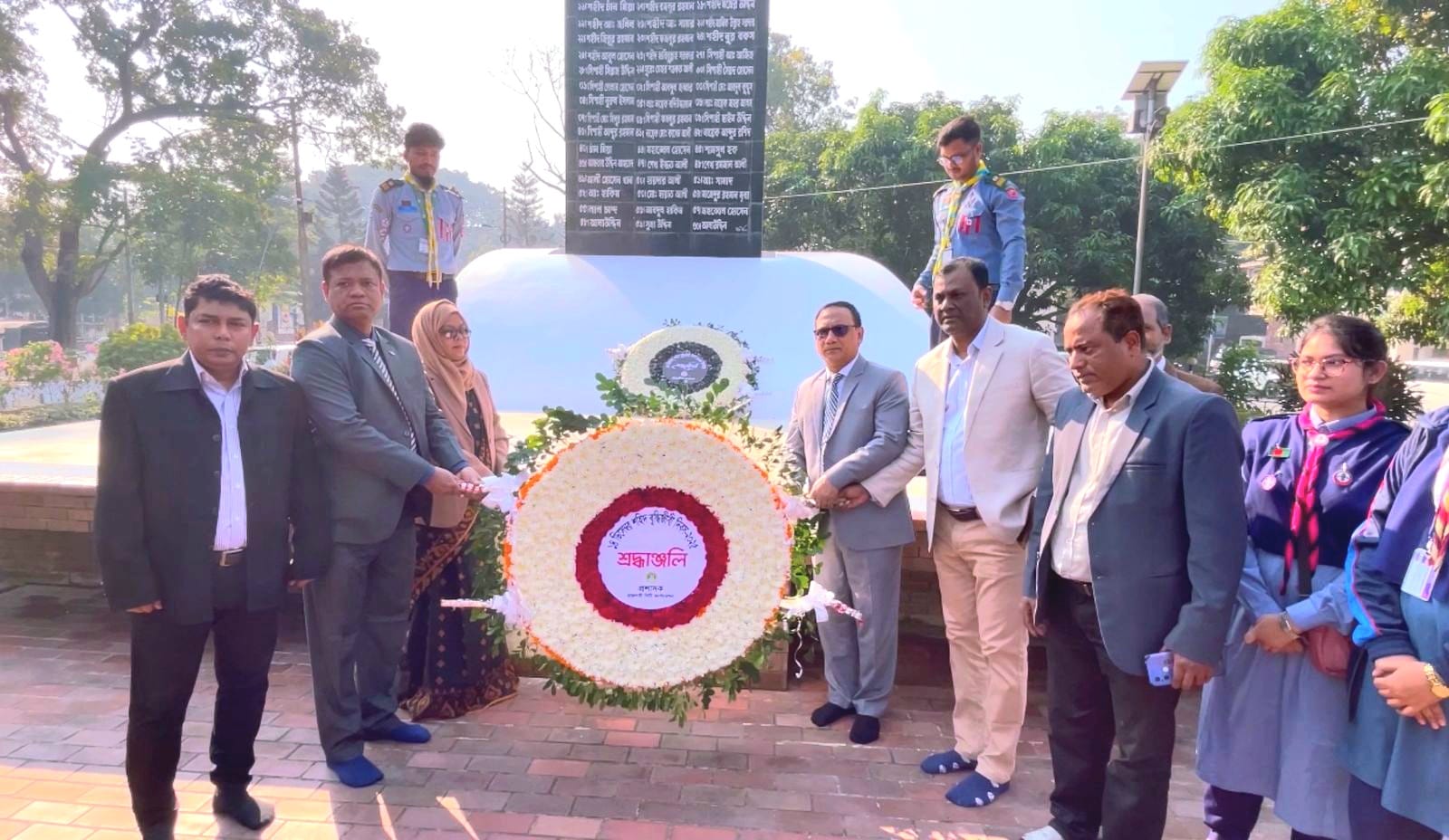 রাজশাহীতে যথাযোগ্য মর্যাদা, শ্রদ্ধা ও ভাবগাম্ভীর্যের মধ্য দিয়ে শহীদ বুদ্ধিজীবী দিবস পালিত হয়েছে। দিবসটি উপলক্ষে রোববার (১৪ ডিসেম্বর) সকালে জেলা প্রশাসক কার্যালয় চত্বরে অবস্থিত শহীদ স্মৃতিফলকে পুষ্পস্তবক অর্পণের মাধ্যমে আনুষ্ঠানিক কর্মসূচির সূচনা করা হয়।কর্মসূচিতে বিভাগীয় প্রশাসন, জেলা প্রশাসন, রাজশাহী মেট্রোপলিটন পুলিশ, জেলা পুলিশসহ বিভিন্ন সরকারি ও বেসরকারি দপ্তরের পক্ষ থেকে শহীদ বুদ্ধিজীবীদের প্রতি শ্রদ্ধা নিবেদন করা হয়। এ সময় ঊর্ধ্বতন সরকারি কর্মকর্তা ও সংশ্লিষ্ট ব্যক্তিবর্গ উপস্থিত ছিলেন।এ ছাড়া বিভিন্ন সামাজিক, সাংস্কৃতিক ও পেশাজীবী সংগঠন এবং সাধারণ মানুষ শহীদ বুদ্ধিজীবীদের স্মরণে পুষ্পস্তবক অর্পণ করেন।পরে সকাল সাড়ে ১০টায় জেলা প্রশাসকের সম্মেলন কক্ষে শহীদ বুদ্ধিজীবী দিবসের গুরুত্ব ও তাৎপর্য তুলে ধরে একটি আলোচনা সভা অনুষ্ঠিত হয়। দিবসটি উপলক্ষে জেলার বিভিন্ন ধর্মীয় উপাসনালয়ে শহীদ বুদ্ধিজীবীদের বিদেহী আত্মার শান্তি কামনায় বিশেষ প্রার্থনার আয়োজন করা হয়।এদিকে সকাল ৮টায় রাজশাহী বিশ্ববিদ্যালয়ের বুদ্ধিজীবী স্মৃতিসৌধে বিশ্ববিদ্যালয় প্রশাসন, শিক্ষক, শিক্ষার্থী,কর্মকর্তা ও কর্মচারীরা পুষ্পস্তবক অর্পণ করেন। সেখানে পৃথকভাবে আলোচনা সভাও অনুষ্ঠিত হয়।আলোচনা সভায় বক্তারা বলেন, বাঙালির মুক্তি ও স্বাধীনতার সংগ্রামে যাঁরা বুদ্ধিবৃত্তিক নেতৃত্ব দিয়েছেন এবং অকাতরে জীবন উৎসর্গ করেছেন, শহীদ বুদ্ধিজীবী দিবস তাঁদের গভীর শ্রদ্ধায় স্মরণ করার দিন। ১৯৭১ সালের ২৫ মার্চের কালরাত থেকে শুরু করে মুক্তিযুদ্ধের শেষ পর্যায় পর্যন্ত পাকিস্তানি বাহিনী পরিকল্পিতভাবে দেশের মেধাবী সন্তানদের হত্যা করে।বিজয়ের প্রাক্কালে এই হত্যাযজ্ঞ আরও ভয়াবহ রূপ নেয়, যেখানে দেশীয় দোসরদের সহযোগিতা ছিল সুস্পষ্ট।বক্তারা আরও বলেন, স্বাধীনতার পর বাংলাদেশকে নেতৃত্বশূন্য ও দুর্বল করে রাখাই ছিল হানাদার বাহিনীর মূল উদ্দেশ্য।জাতির সেই অপূরণীয় ক্ষতি আজও গভীরভাবে অনুভূত হলেও বাংলাদেশ এগিয়ে যাচ্ছে দৃঢ় প্রত্যয় ও অদম্য গতিতে এমনটাই সকলের প্রত্যাশা।