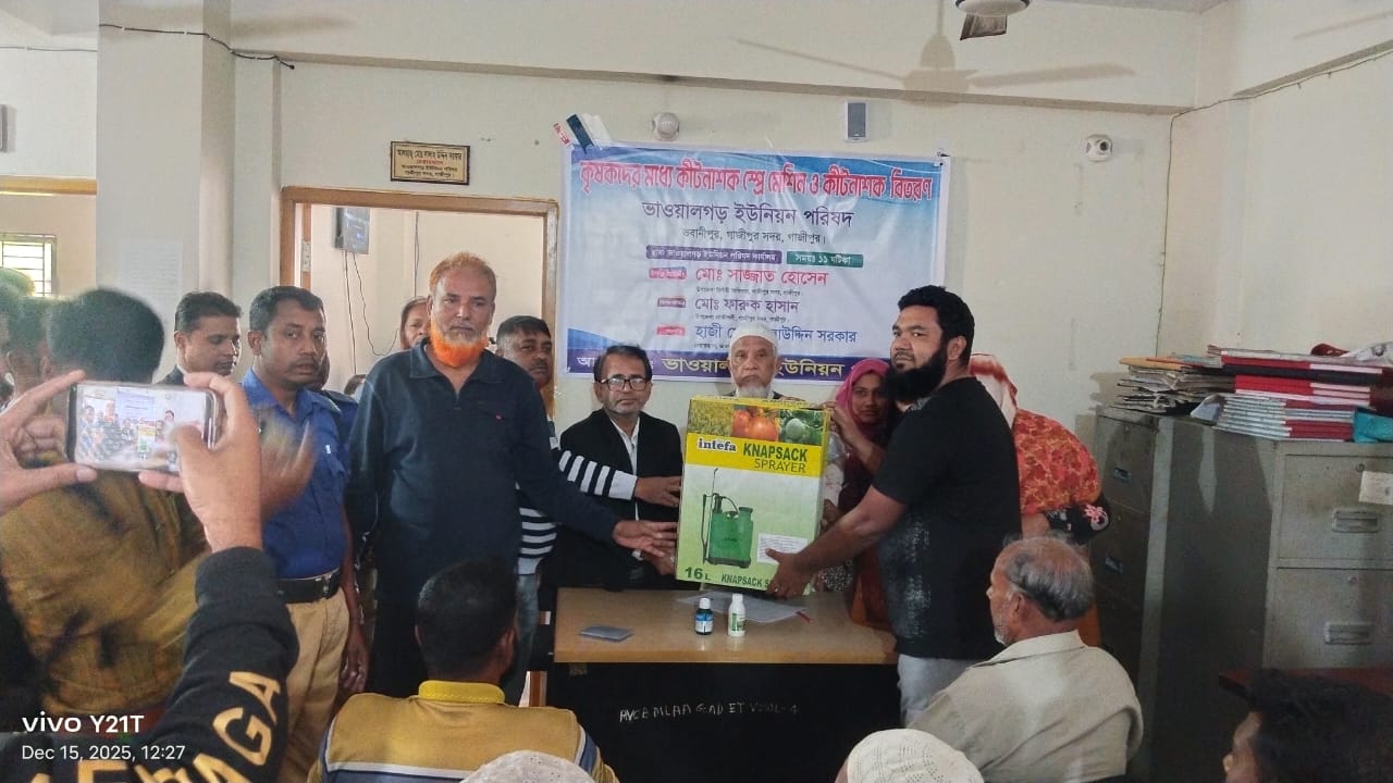 গাজীপুর সদর, ১৫ ডিসেম্বর ২০২৫: কিষকদের আধুনিক কৃষির দিকে উৎসাহিত করতে এবং ফসলের সুরক্ষা নিশ্চিত করতে গাজীপুর সদর উপজেলার ভাওয়ালগড় ইউনিয়ন পরিষদে এক বিশেষ বিতরণ অনুষ্ঠানের আয়োজন করা হয়। এই অনুষ্ঠানে কিষকদের মাঝে কীটনাশক স্প্রে মেশিন এবং প্রয়োজনীয় কীটনাশক বিতরণ করা হয়। সোমবার, ১৫ ডিসেম্বর, ২০২৫ ইং তারিখে সকাল ১১টায় ভাওয়ালগড় ইউনিয়ন পরিষদ প্রাঙ্গণে বিপুল সংখ্যক কিষক ও স্থানীয় গণ্যমান্য ব্যক্তিবর্গের উপস্থিতিতে অনুষ্ঠানটি সম্পন্ন হয়।