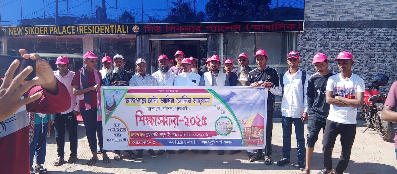 ১৪.১২.২০২৫খ্রি: তারিখ রোজ রবিবার বাউফলের ৪০ বছরের ঐতিহ্যবাহী দ্বীনি শিক্ষা প্রতিষ্ঠান ঢালী আসিয়া আলিম মাদ্রাসার ২০২৫ সালের বার্ষিক শিক্ষা সফর দেশের দ্বিতীয় বৃহত্তম সমুদ্র সৈকত কুয়াকাটায় পালিত হয়।পূর্ব পরিকল্পনার আলোকে শিক্ষা সফর বাস্তবায়ন কমিটি যাওয়া আসার জন্য একটি বাস ও একটি মাইক্রো ভাড়া করে সকাল ৮ ঘটিকায় উপজেলার গোলাবাড়ি থেকে যাত্রা আরম্ভ করে প্রায় সাড়ে তিন ঘণ্টা পর দুপুর পৌনে বারোটার দিকে কুয়াকাটা পৌঁছান। সেখানে নিউ শিকদার হোটেলে সাময়িক বিশ্রামের পর সকলে মিলে সমুদ্র সৈকতের উদ্দেশ্যে বের হন।উল্লেখ্য, এতে অংশগ্রহণ করেন প্রতিষ্ঠানের ছাত্র-ছাত্রী, অভিভাবক, শিক্ষক এবং প্রতিষ্ঠানের ম্যানেজিং কমিটির সদস্যবৃন্দসহ প্রায় ১০০ জন ব্যক্তিবর্গ।প্রতিষ্ঠানের সূত্রমতে জানা যায়, শিক্ষা সফরের সার্বিক কার্যক্রমে আর্থিক সহযোগিতা করেন প্রতিষ্ঠানে সম্মানিত সভাপতি বিশিষ্ট ব্যবসায়ী ও তরুন সমাজ সেবক জনাব সাইফুল ইসলাম প্যাদা।শিক্ষা সফরে নেতৃত্ব দেন মাদ্রাসাটির অধ্যক্ষ মাওলানা আব্দুল হালিম। তাকে সহযোগিতা করেন মাস্টার আলামিন, মাওলানা মোস্তফা কামাল, মাওলানা ইদ্রিস আলী, মাওলানা কাউসার হামিদসহ অন্যান্য শিক্ষক ও শিক্ষিকা মন্ডলী।দুপুর ২ টা পর্যন্ত সমুদ্র সৈকতে ঘোরাঘুরি ও গোসলের পর যোহরের নামাজ ও খাওয়া দাওয়ার পরে সকলে যার যার কেনাকাটা করে বিকাল ৫ ঘটিকার দিকে বাড়ির উদ্দেশ্যে রওনা হয়ে রাত এগারো টার দিকে বাউফল এসে পৌঁছান।প্রসঙ্গত, প্রতিষ্ঠানের বেশ কয়েকজন অভিভাবকের সাথে কথা বলে জানা যায় প্রতিষ্ঠার পর থেকে প্রতিষ্ঠান থেকে ইতিপূর্বে কখনো শিক্ষা সফরের আয়োজন করা হয়নি। বিগত সময়ে কোন সভাপতিও এ ধরনের শিক্ষার মান উন্নয়নের সাথে সংশ্লিষ্ট সহপাঠ্য কার্যক্রমের উদ্যোগ নেননি। তারা শুধু প্রতিষ্ঠানকে ব্যবহার করেছেন প্রতিষ্ঠানকে কিছুই দিয়ে যেতে পারেননি।প্রতিষ্ঠানের শিক্ষা কার্যক্রমকে গতিশীল করা এবং প্রতিষ্ঠানের সহপাঠ্য কার্যক্রমকে উৎসাহিত করার জন্য শিক্ষা সফরের মত উদ্যোগ গ্রহণের জন্য মাদ্রাসাটির শিক্ষক, শিক্ষার্থী ও অভিভাবক সকলে সভাপতি মহোদয়কে ধন্যবাদ ও কৃতজ্ঞতা জানান।