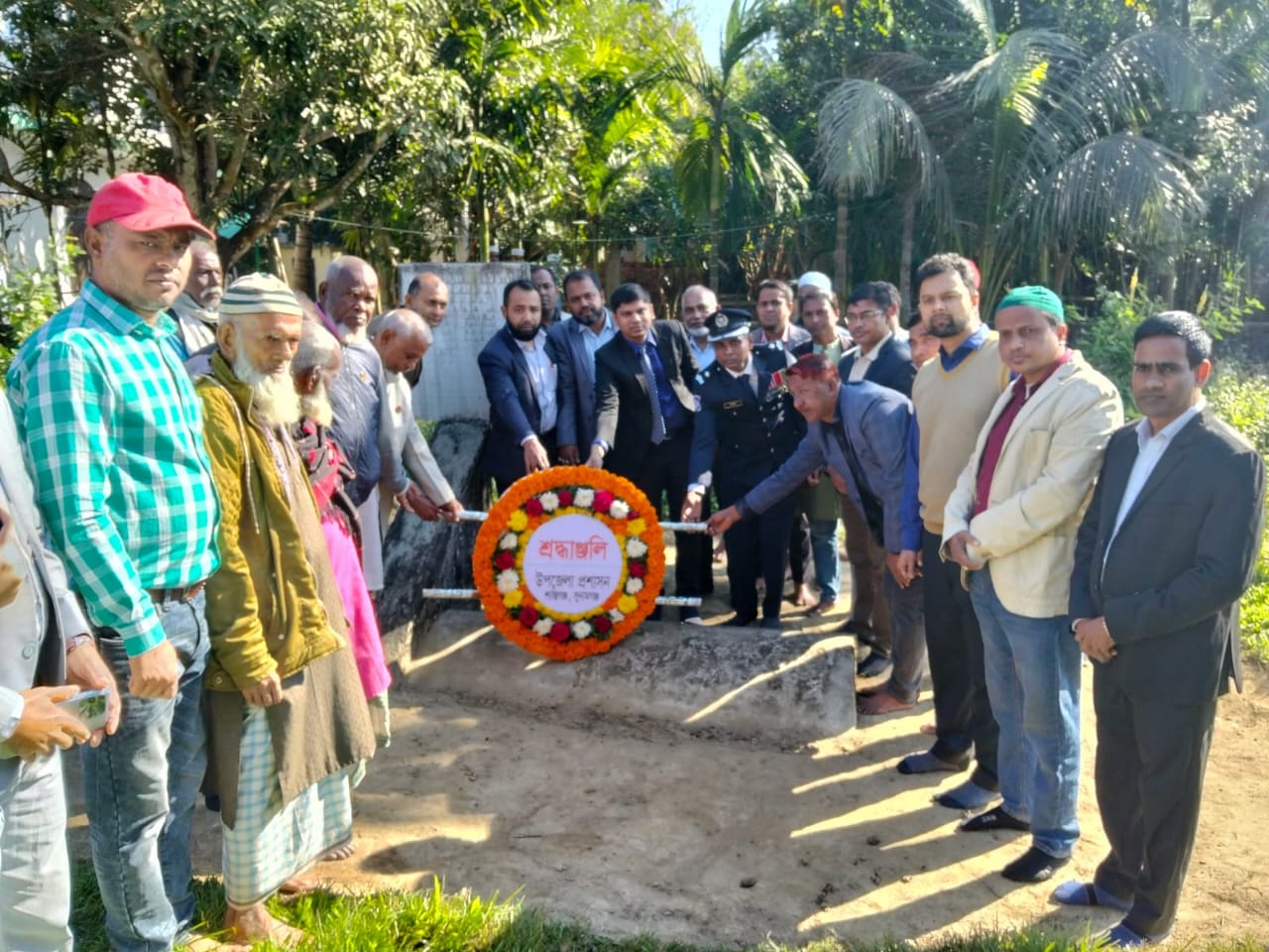সুনামগঞ্জের শান্তিগঞ্জে ১৪ ডিসেম্বর শহীদ বুদ্ধিজীবি দিবস উপলক্ষে মুক্তিযুদ্ধে শহিদ হওয়া বীর মুক্তিযোদ্ধা তালেব উদ্দিন ও কৃপেন্দ্র দাসের সমাধিতে পুষ্পস্তবক অর্পণ ও তাদের আত্মার মাগফিরাত কামনা করে বিশেষ মোনাজাত করা হয়।রবিবার (১৪ ডিসেম্বর ) সকাল ১০ টায় শান্তিগঞ্জ উপজেলা প্রশাসনের আয়োজনে উজানীগাঁও গ্রামে বীর মুক্তিযোদ্ধাদের সমাধিতে এ পুষ্পস্তবক অর্পণ করা হয়।এসময় উপস্থিত ছিলেন- শান্তিগঞ্জ উপজেলা নির্বাহী কর্মকর্তা মোহাম্মদ শাহজাহান, উপজেলা স্বাস্থ্যকমপ্লেক্স এর আরএমও ডা: তারিক জামিল অপু, শান্তিগঞ্জ থানার ভারপ্রাপ্ত কর্মকর্তা (ওসি) মো: অলিউল্লাহ, জয়কলস ইউপি চেয়ারম্যান আব্দুল বাছিত সুজন, উপজেলা কৃষি কর্মকর্তা আহসান হাবিব, প্রকল্প বাস্তবায়ন কর্মকর্তা জাহাঙ্গীর আলম, সমবায় কর্মকর্তা রুহুল হাসান, প্রাথমিক শিক্ষা কর্মকর্তা সেলিম খান, মুক্তিযোদ্ধা কমান্ডের কমান্ডার আতাউর রহমান, মাধ্যমিক একাডেমিক সুপার ভাইজার নূরে আলম সিদ্দিকী, উপজেলা প্রশাসনের প্রশাসনিক কর্মকর্তা শাহীনুর রহমান, শান্তিগঞ্জ প্রেসক্লাবের সভাপতি সামিউল কবির, সাধারণ সম্পাদক মো. নুরুল হক, দপ্তর সম্পাদক মান্নার মিয়া,নির্বাহী সদস্য দিলীপ কুমার দাশ সহ উপজেলার বিভিন্ন ইউনিয়নের বীরমুক্তিযোদ্ধা ও উপজেলা প্রশাসনের বিভিন্ন বিভাগের কর্মকর্তা ও কর্মচারী সহ প্রমুখ৷