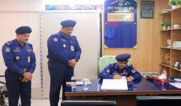 শ্যামনগর থানা আকস্মিক পরিদর্শন করলেন সাতক্ষীরার পুলিশ সুপার আরেফিন জুয়েল। সোমবার ১৫ ডিসেম্বর সাতক্ষীরা জেলার শ্যামনগর থানা আকস্মিক পরিদর্শন করেন সাতক্ষীরা জেলার সুযোগ্য পুলিশ সুপার জনাব মোঃ আরেফিন জুয়েল (বিপিএম), পরিদর্শনকালে সর্বপ্রথম শ্যামনগর থানা পুলিশের একটি চৌকস দল তাঁকে গার্ড অব অনার প্রদান করে। অভিবাদন মঞ্চ থেকে সালামী গ্রহণ শেষে পুলিশ সুপার অত্র থানায় কর্মরত সকল অফিসার ও ফোর্সের সাথে মতবিনিময় করেন। পুলিশ সুপার থানায় কর্মরত সকল অফিসার ও ফোর্সের উদ্দেশ্যে গুরুত্বপূর্ণ দিকনির্দেশনা প্রদান করেন। তিনি বলেন, প্রতিটি পুলিশ সদস্যের উপর অর্পিত দায়িত্ব ও কর্তব্য যথাযথভাবে পালন করতে হবে। তিনি আরও বলেন, জনবান্ধব পুলিশিং প্রতিষ্ঠা, আইন-শৃঙ্খলা রক্ষা ও অপরাধ নিয়ন্ত্রণে সবাইকে পেশাদারিত্ব, সততা ও নিষ্ঠার সাথে দায়িত্ব পালন করতে হবে। জনগণের আস্থা অর্জন ও পুলিশি সেবাকে আরও কার্যকর করতে থানাভিত্তিক বিট পুলিশিং, দ্রুত সাড়া দেওয়ার মানসিকতা এবং মানবিক দৃষ্টিভঙ্গি নিয়ে কাজ করার ওপর গুরুত্ব আরোপ করেন। এসময় উপস্থিত ছিলেন মোঃ খালেদুর রহমান, অফিসার ইনচার্জ, শ্যামনগর থানা, মোঃ পিয়ার উদ্দিন, ইন্সপেক্টর (তদন্ত), শ্যামনগর থানা সহ বিভিন্ন পদমর্যাদার পুলিশ সদস্যবৃন্দ।