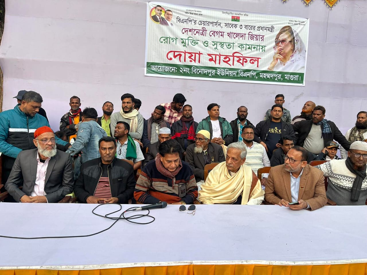 মাগুরা জেলার মহম্মদপুর উপজেলার বিনোদপুর ইউনিয়নে সাবেক প্রধানমন্ত্রী বেগম খালেদা জিয়ার রোগমুক্তি কামনায় দোয়া ও আলোচনা সভা অনুষ্ঠিত হয়েছে।