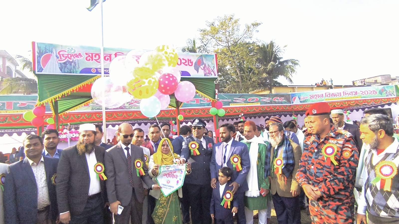 নওগাঁর নিয়ামতপুর উপজেলায় যথাযোগ্য মর্যাদায় দিনব্যাপী নানা আয়োজনের মধ্য দিয়ে মহান বিজয় দিবস উদযাপিত হয়েছে ।দিবসটি উপলক্ষে মঙ্গলবার (১৬ ডিসেম্বর ) সূর্যোদয়ের সঙ্গে সঙ্গে নিয়ামতপুর সরকারি বহুমুখী মডেল উচ্চ বিদ্যালয় মাঠে সূর্যোদয়ের সঙ্গে সঙ্গে ৩১বার তোপধ্বনির মধ্য দিয়ে শুরু হয় মহান বিজয় দিবসের আনুষ্ঠানিকতা । প্রথমে শহীদ মিনারে পুষ্পস্তবক অর্পণ করে শ্রদ্ধা নিবেদন করেন উপজেলা প্রশাসন ও সর্বস্তরের মানুষ।শহীদ মিনারে প্রথমে পুষ্পস্তবক অর্পণ করেন উপজেলা নির্বাহী কর্মকর্তা (ইউএনও) মুর্শিদা খাতুন ও সহকারী কমিশনার ভূমি রেজাউল করিম, থানা অফিসার ইনচার্জ শফিকুল ইসলাম। পরে মুক্তিযোদ্ধারা পুষ্পস্তবক অর্পণ করেন। এরপর থানা ভারপ্রাপ্ত কর্মকর্তা (ওসি) শফিকুল ইসলামসহ পরে নিয়ামতপুর উপজেলা মডেল প্রেসক্লাব ও বাংলাদেশ মফস্বল সাংবাদিক ইউনিয়ন নিয়ামতপুর শাখার পক্ষ থেকে পুষ্পস্তবক অর্পণ করেন। এর পর পর্যায়ক্রমে বিভিন্ন শ্রেণি পেশার মানুষের পাশাপাশি রাজনৈতিক দল ও বিভিন্ন সরকারি- বেসরকারি প্রতিষ্ঠান, সামাজিক-সাংস্কৃতিক সংগঠন ফুল দিয়ে শ্রদ্ধা নিবেদন করেন।পুষ্পস্তবক অর্পণ এরপর সকাল নয়টায় নিয়ামতপুর সরকারি বহুমুখী মডেল উচ্চ বিদ্যালয় মাঠে কুচকাওয়াজ, ডিসপ্লে ও খেলাধুলা অনুষ্ঠিত হয়। এছাড়াও জাতির শ্রেষ্ঠ সন্তান বীর মুক্তিযোদ্ধাদের সংবর্ধনা প্রদান করা হয়।