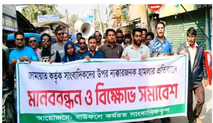এঘটনায় তাৎক্ষণিক প্রতিবাদ জানিয়ে বাউফলে কর্মরত সংবাদকর্মীরা মানববন্ধন ও বিক্ষোভ সমাবেশ করে।