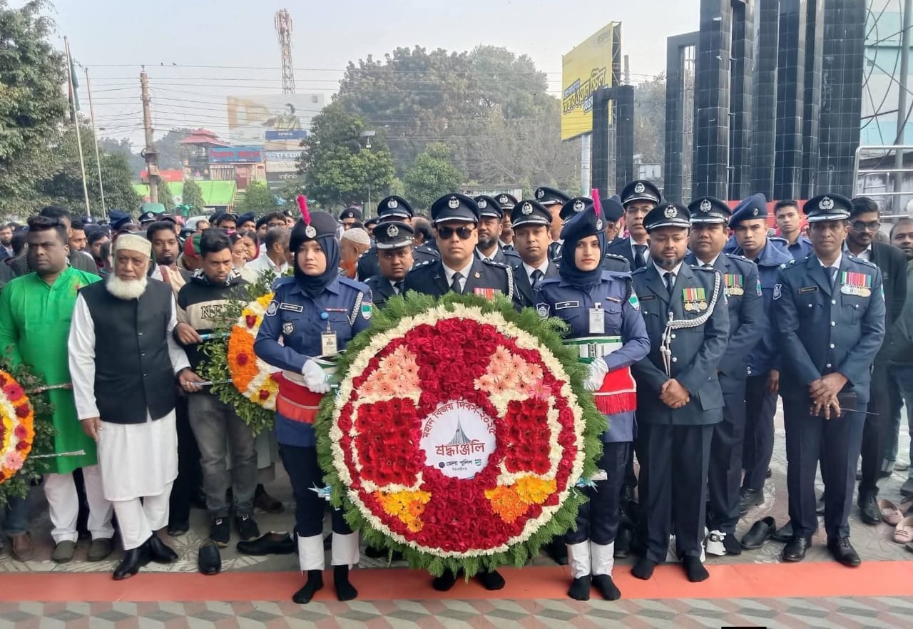 দীর্ঘ প্রতীক্ষার সূর্যালোক যেদিন এই বাংলার দিগন্তে স্বাধীনতার বার্তা এনেছিল, সেই পবিত্র বিজয় দিবস আজ ঝিনাইদহের মাটিকে স্পর্শ করেছে এক বিশেষ মহিমায়। শ্রদ্ধাঞ্জলি, তোপধ্বনি আর পদযাত্রার মধ্য দিয়ে এই জনপদে পালিত হলো মহান বিজয় দিবস।নক্ষত্রপতনের পর প্রভাতের প্রথম কিরণ যখন ঝিনাইদহের আকাশ রাঙালো, ঠিক তখনই সদর থানা প্রাঙ্গণে ধ্বনিত হলো ৩১ বার তোপধ্বনি যা যেন ছিল বীর শহিদদের উদ্দেশে এক গভীর প্রত্যয় ও কৃতজ্ঞতার জয়ধ্বনি। এই ধ্বনির মধ্য দিয়েই শুরু হলো দিনব্যাপী কর্মসূচির মহৎ আয়োজন।