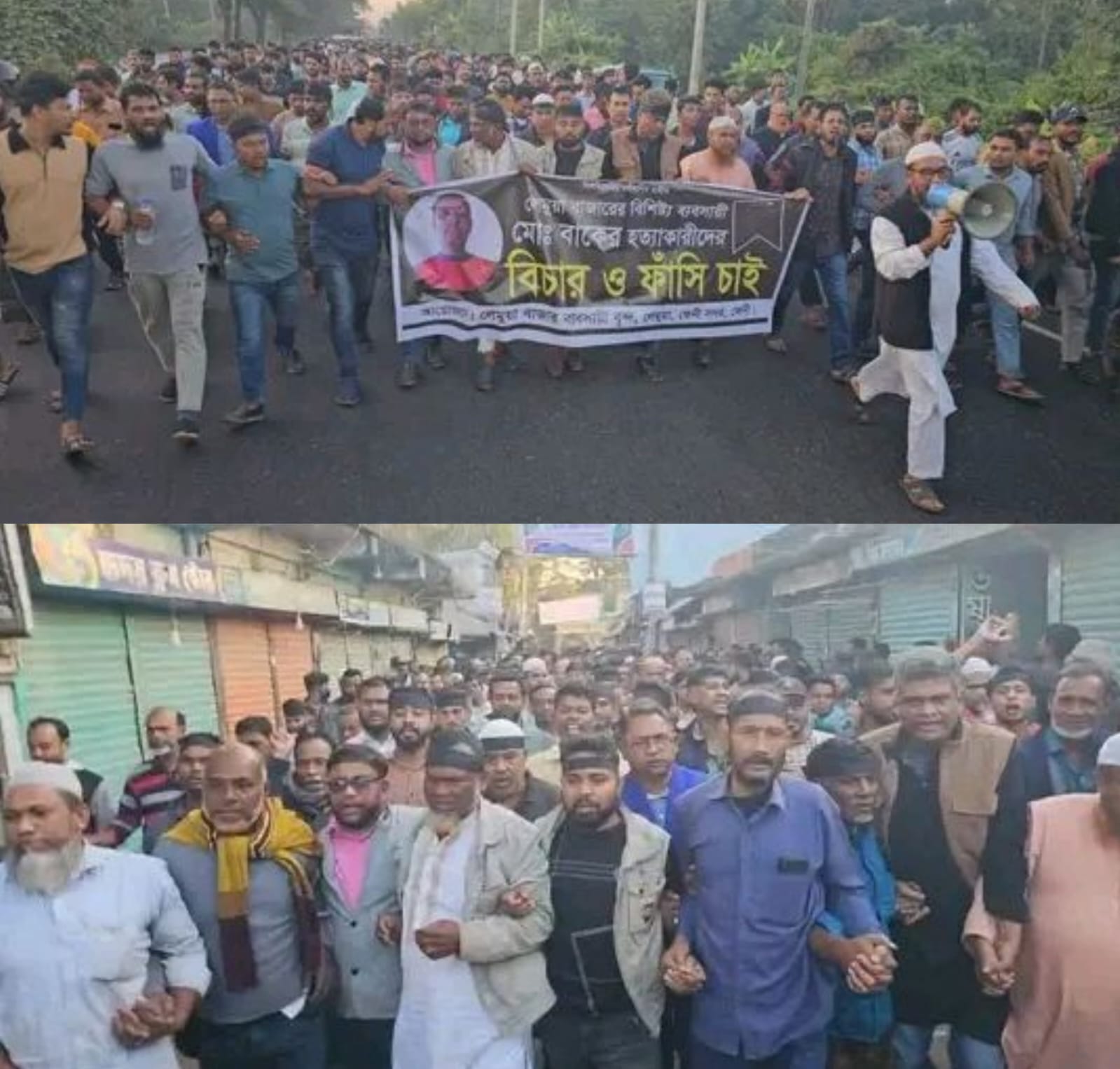 দ্রুত গ্রেপ্তার ও দৃষ্টান্তমূলক শাস্তির দাবিতে বিক্ষোভ মিছিল, বোগদাদিয়া থানা অভিমুখে পদযাত্রা লেমুয়া বাজারের ব্যবসায়ী মো. বাকেরকে ছিনতাইকারীর হামলায় নির্মমভাবে হত্যার ঘটনায় পুরো লেমুয়া এলাকা জুড়ে নেমে এসেছে শোক ও ক্ষোভ।এ ঘটনার প্রতিবাদে এবং হত্যাকাণ্ডে জড়িতদের দ্রুত গ্রেপ্তার ও দৃষ্টান্তমূলক শাস্তির দাবিতে বিক্ষোভ মিছিল ও বোগদাদিয়া থানা অভিমুখে পদযাত্রা করেছেন লেমুয়া বাজারের ব্যবসায়ীরা।বুধবার (১৭ ডিসেম্বর) বিকেল সাড়ে ৪টার দিকে লেমুয়া বাজার কেন্দ্রীয় বড় জামে মসজিদের সামনে থেকে বিক্ষোভ মিছিলটি শুরু হয়। মিছিলটি লেমুয়া বাজারের প্রধান প্রধান সড়ক প্রদক্ষিণ করে লেমুয়া বাণিজ্যিক এলাকা হয়ে ঢাকা–চট্টগ্রাম মহাসড়ক অতিক্রম করে বোগদাদিয়া থানা (তদন্ত কেন্দ্র) প্রাঙ্গণে গিয়ে শেষ হয়