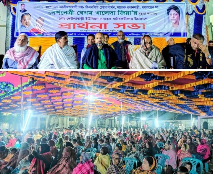 টাঙ্গাইলের ঘাটাইল উপজেলার দেউলাবাড়ী ইউনিয়নে দেশনেত্রী ও সাবেক প্রধানমন্ত্রী বেগম খালেদা জিয়ার সুস্থতা কামনায় এক ব্যতিক্রমী প্রার্থনা সভা অনুষ্ঠিত হয়েছে। দেউলাবাড়ী ইউনিয়নের হিন্দু ধর্মাবলম্বীদের উদ্যোগে আয়োজিত এ প্রার্থনা সভায় ধর্ম-বর্ণ নির্বিশেষে হাজারো মানুষ অংশগ্রহণ করেন।