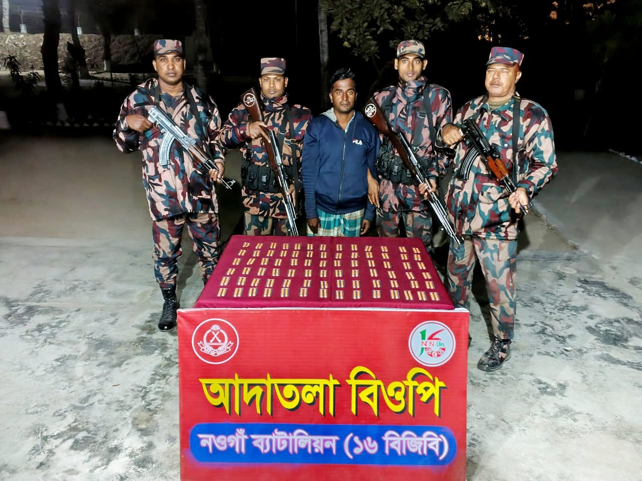 নওগাঁ ব্যাটালিয়ন (১৬ বিজিবি) অধিনায়ক লেঃকর্ণেলঃমোহাম্মদ আরিফুল ইসলাম মাসুম পি এস সি এর সরাসরি নির্দেশনায়,বিজিবির একটা চৌকস দল অভিযান পরিচালনা করে বিপুল পরিমাণ মাদক সহ চোরাকারবারি আটক করেছে। নওগাঁ সীমান্তে ০১ জন চোরাকারবারীসহ বিপুল পরিমাণ ভারতীয় ট্যাপেন্টাডল ট্যাবলেট আটক।গত ২০ ডিসেম্বর ২০২৫ তারিখ আনুমানিক ২৩১০ ঘটিকায় নওগাঁ জেলার সাপাহার থানার অন্তর্গত অত্র ব্যাটালিয়নের অধীনস্থ আদাতলা বিওপির টহল কমান্ডার হাবিলদার মো: সিরাজুল ইসলাম এর নেতৃত্বে একটি বিশেষ টহল দক্ষিণ পাতাড়ী গ্রামের মসজিদ সংলগ্ন কাঁচা রাস্তার উপর অভিযান পরিচালনা করে ৭৯০ পিস ভারতীয় ট্যাপেন্টাডল ট্যাবলেটসহ ০১ জন চোরাকারবারী মোঃ আব্দুল হালিম (বাবু) (২৮),পিতা-মৃত আব্দুল হান্নান, গ্রাম-দক্ষিণ পাতাড়ী, পোস্ট-পাতাড়ী, থানা-সাপাহার, জেলা- নওগাঁ’কে আটক করতে সক্ষম হয়। আটককৃত আসামীর বিরুদ্ধে নওগাঁ জেলার সাপাহার থানায় মামলা দায়ের পূর্বক মাদকদ্রব্যসহ পুলিশের নিকট হস্তান্তর করার কার্যক্রম প্রক্রিয়াধীন রয়েছে।নওগাঁ ও চাঁপাইনবাবগঞ্জ সীমান্তে গরু/মাদক পাচার/অবৈধ সীমান্ত পারাপার এবং চোরাচালানের বিরুদ্ধে সর্বাত্বক অভিযান অব্যাহত রাখার অঙ্গিকার ব্যক্ত করেছেন অধিনায়ক, নওগাঁ ব্যাটালিয়ন লেঃ কর্নেল মোহাম্মদ আরিফুল ইসলাম মাসুম, পিএসসি।