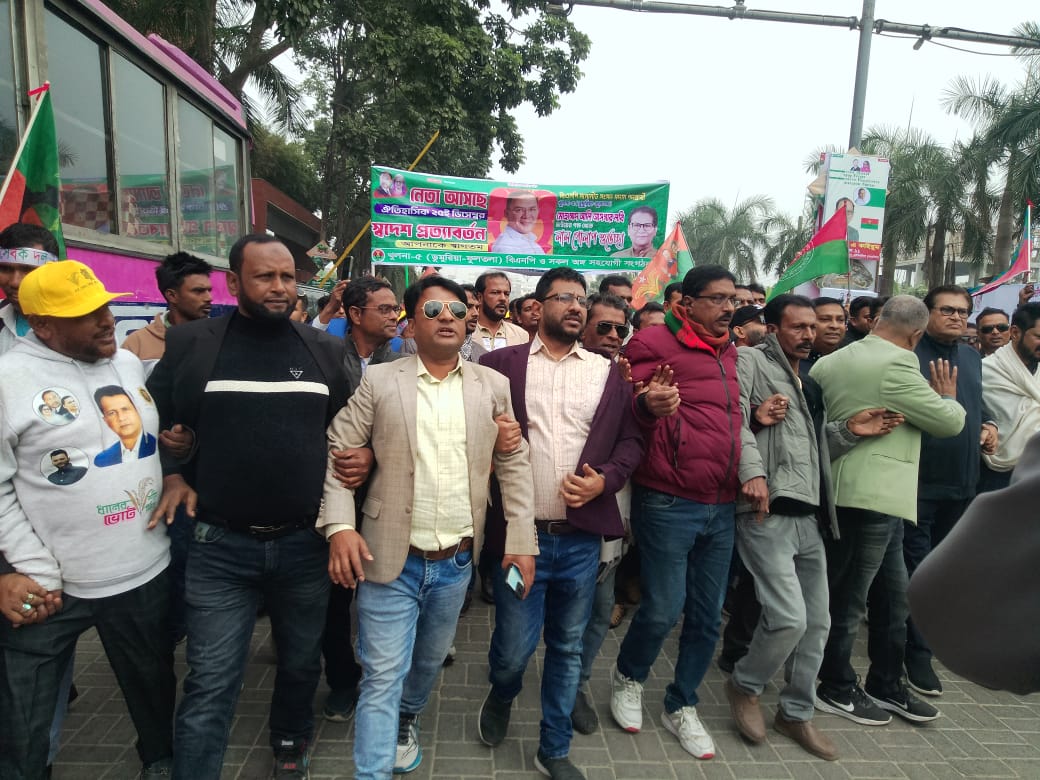 তারেক রহমানের আগমন উপলক্ষ্যে ঢাকার রাজ পথে ডুমুরিয়া উপজেলা বি এন বি।