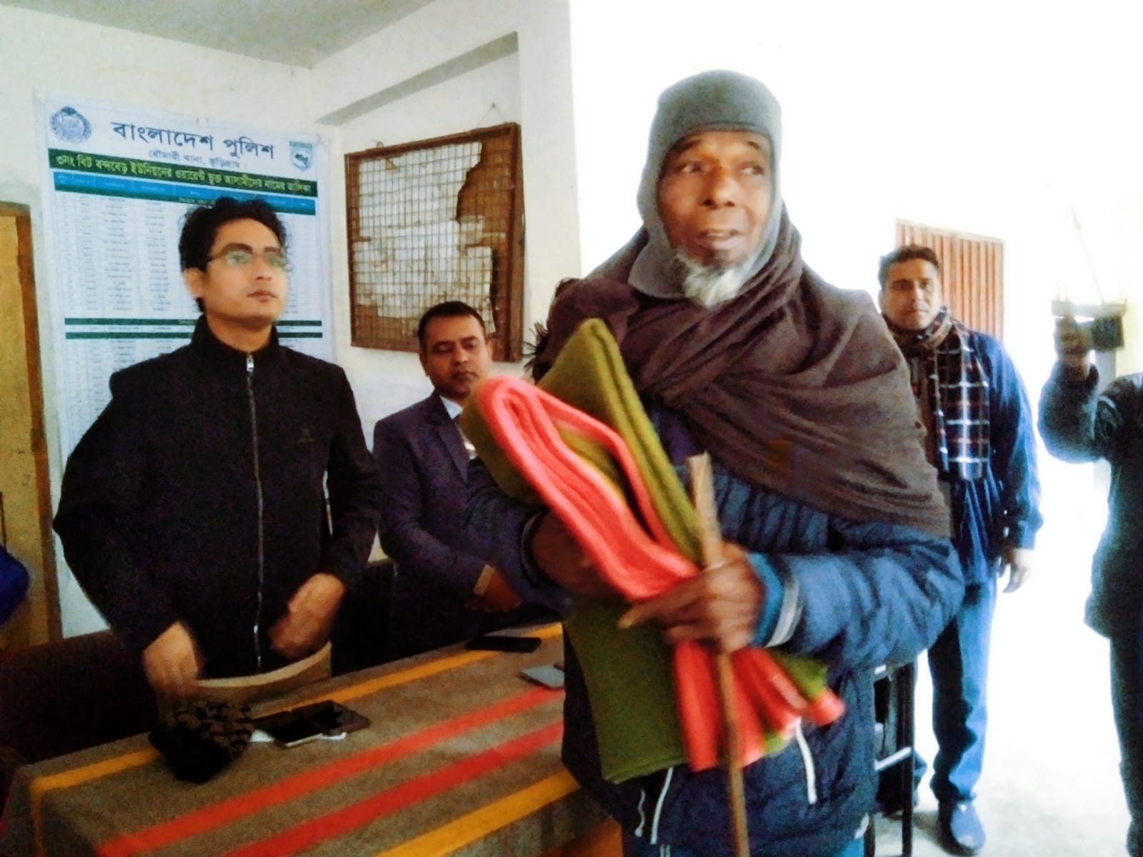 রৌমারীতে শীতার্ত অসহায় দরিদ্র মানুষের মাঝে কম্বল বিতরণ করেন প্রশাসন।