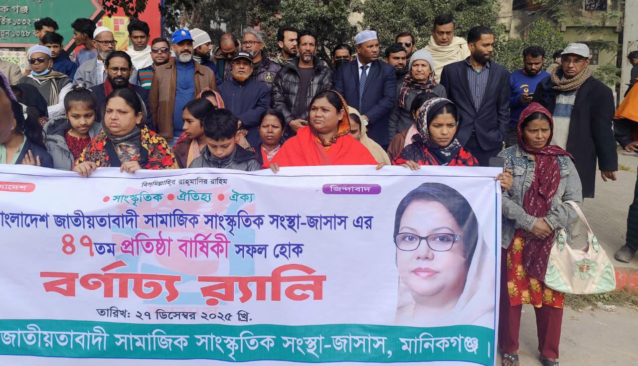 বাংলাদেশ জাতীয়তাবাদী সামাজিক সাংস্কৃতিক সংস্থা (জাসাস)-এর ৪৭তম প্রতিষ্ঠাবার্ষিকী উপলক্ষে মানিকগঞ্জ জেলা জাসাস এর পক্ষ থেকে বর্ণাঢ্য কর্মসূচির মধ্য দিয়ে দিবসটি উদযাপন করা হয়েছে। মানিকগঞ্জ জেলা বিএনপির সফল আহ্বায়ক আফরোজা খানম রিতা-র দিকনির্দেশনায় আজ দিনব্যাপী এই প্রতিষ্ঠাবার্ষিকীর আয়োজন করা হয়।