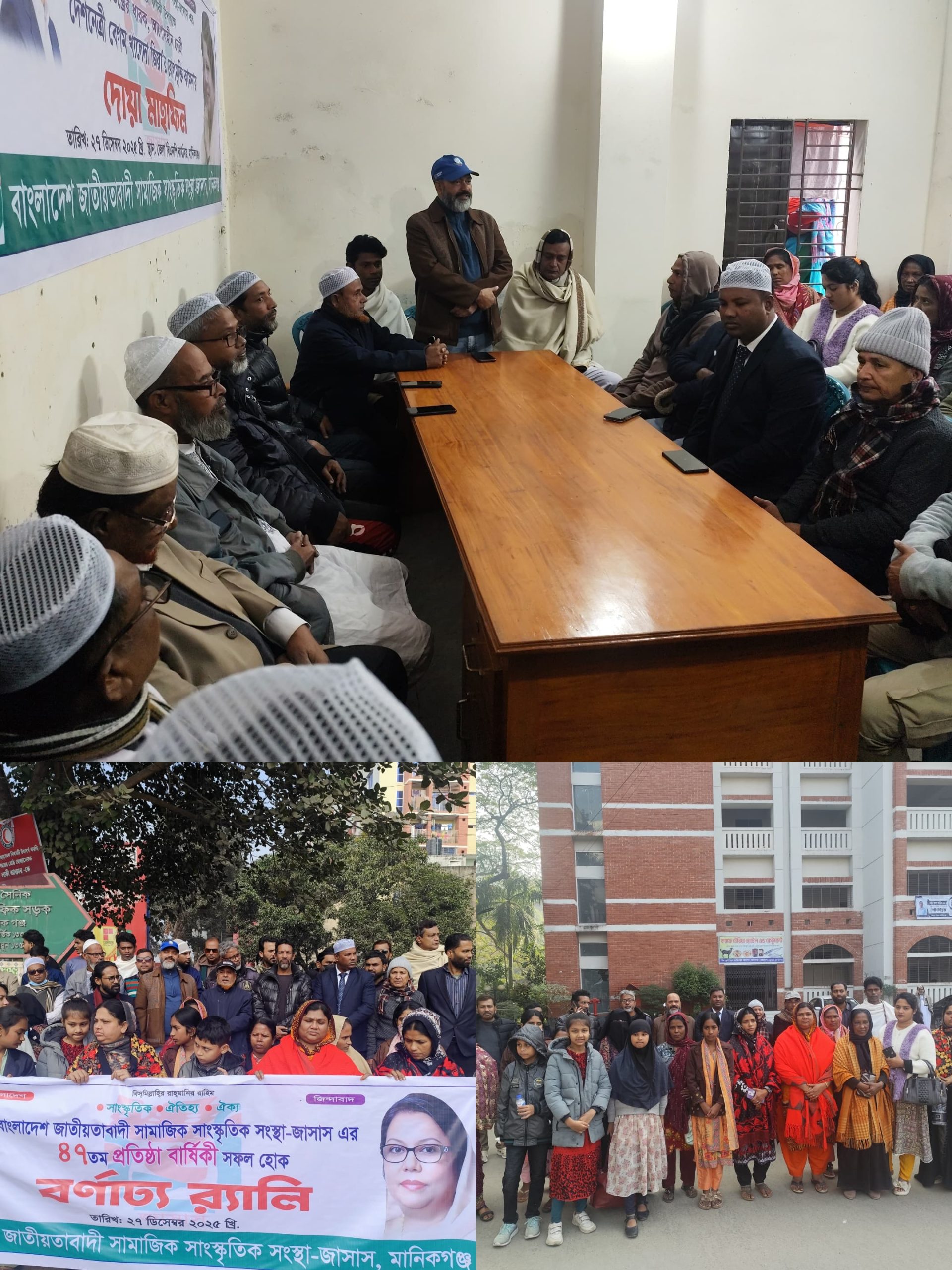 মানিকগঞ্জ জেলা জাতীয়তাবাদী সামাজিক সাংস্কৃতিক সংস্থা (জাসাস)-এর ৪৭তম প্রতিষ্ঠাবার্ষিকী উপলক্ষে বর্ণাঢ্য কর্মসূচির মধ্য দিয়ে দিবসটি উদযাপন করা হয়েছে। মানিকগঞ্জ জেলা বিএনপির সফল আহ্বায়ক আফরোজা খানম রিতা-র দিকনির্দেশনায় আজ দিনব্যাপী এই প্রতিষ্ঠাবার্ষিকীর আয়োজন করা হয়।অনুষ্ঠানে প্রধান অতিথি হিসেবে উপস্থিত ছিলেন মানিকগঞ্জ জেলা জাসাসের সিনিয়র যুগ্ম আহ্বায়ক মোঃ ওহিদুল ইসলাম লোটাস। বিশেষ অতিথি হিসেবে উপস্থিত ছিলেন মুনজুর আলম পালু ও জিয়াউল ইসলাম শাওন যুগ্ম আহবায়ক মানিকগঞ্জ জেলা জাসাস। মানিকগঞ্জ জেলা জাসাস এর সদস্য সচিব, মোঃ শামীম বিশ্বাস শারীরিক অসুস্থতায়, অনুষ্ঠানে উপস্থিত হতে পারেননি। তার শারীরিক সুস্থতার জন্য দোয়া করেন। এছাড়াও উপস্থিত ছিলেন সাটুরিয়া উপজেলা জাসাসের সভাপতি ও সাধারণ সম্পাদকসহ মানিকগঞ্জ জেলার বিভিন্ন উপজেলা জাসাসের সভাপতি ও সাধারণ সম্পাদকবৃন্দ। এ সময় বিএনপির সকল অঙ্গ ও সহযোগী সংগঠনের নেতাকর্মীরাও উপস্থিত ছিলেন।
