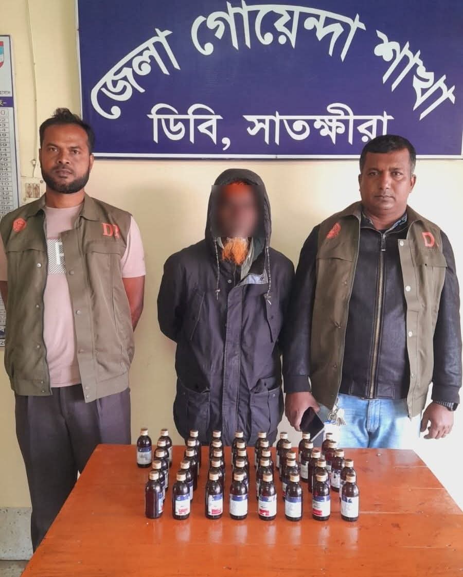 সাতক্ষীরা জেলা গোয়েন্দা শাখা (ডিবি) কর্তৃক মাদকবিরোধী বিশেষ অভিযানে ৪১ (একচল্লিশ) বোতল উইন কোরেক্স সহ ০১ জন গ্রেফতার।