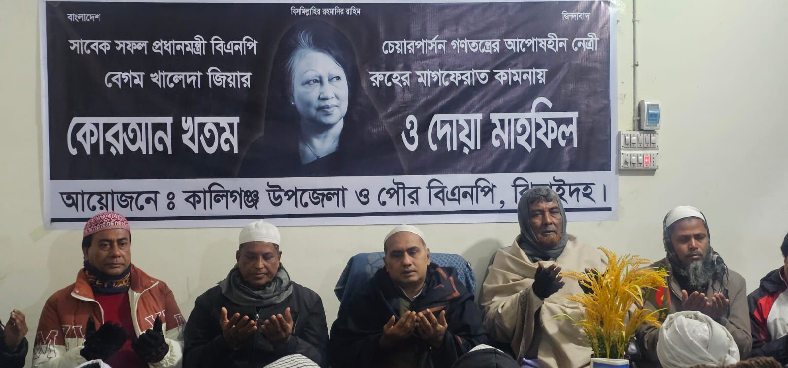 ঝিনাইদহে কালীগঞ্জে বেগম খালেদা জিয়ার মৃত্যুতে কুরআন খতম ও দোয়া মাহফিল অনুষ্ঠিত