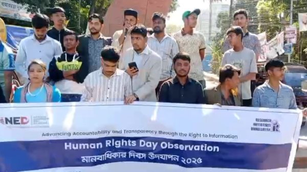 মোঃ রাশিদুল ইসলাম গাজীপুরের কালিয়াকৈরে জামালপুর চার রাস্তায় আজ ১০ ডিসেম্বর বিশ্ব মানবাধিকার দিবসের বর্ণাঢ্য শোভাযাত্রা অনুষ্ঠিত হয়। বাংলাদেশ মানবাধিকার বাস্তবায়ন সংস্থা, কালিয়াকৈর থানা কমিটির আয়োজনে শোভাযাত্রাটি ওই এলাকার প্রধান ...বিস্তারিত পড়ুন