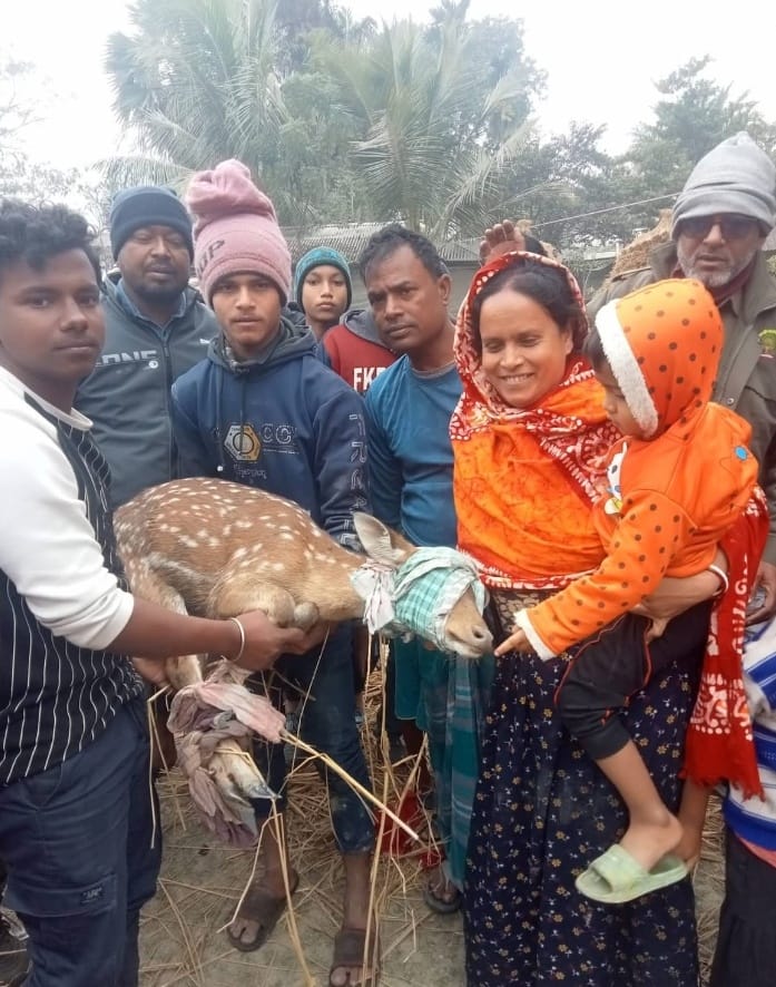 সুন্দরবন থেকে লোকালয়ে আসা হরিণ উদ্ধার করলো এলাকাবাসী