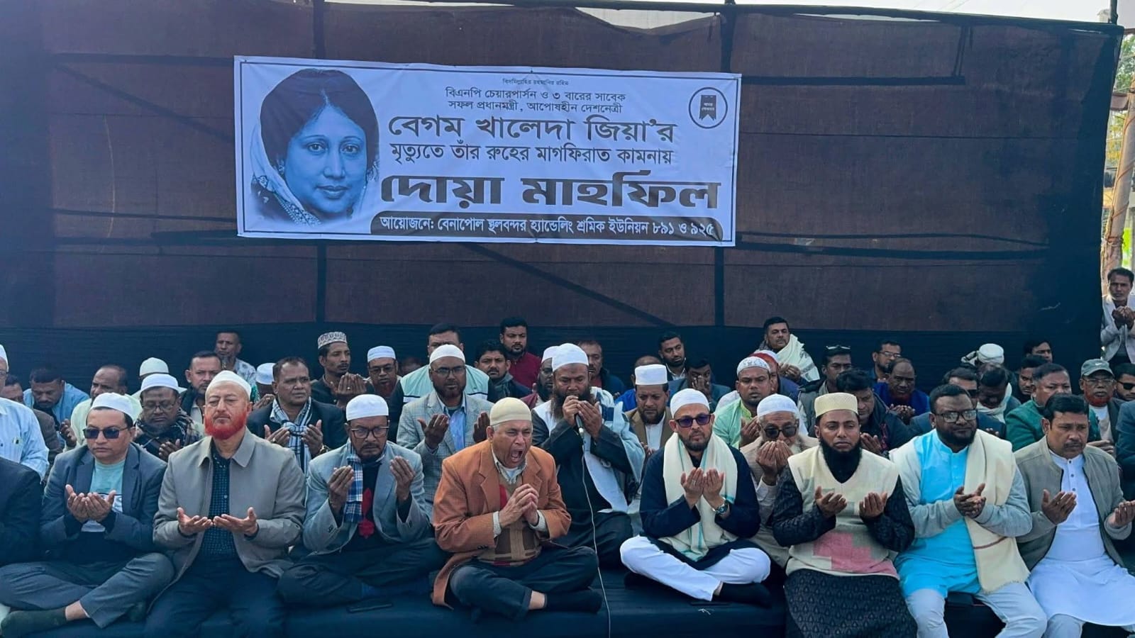 ৭ জানুয়ারি ২০২৬ বুধবার দুপুরে। আপসহীন নেত্রী, তিনবারের সাবেক প্রধানমন্ত্রী, দেশনেত্রী বেগম খালেদা জিয়া–এর ইন্তেকালে গভীর শোক প্রকাশ ও তাঁর রুহের মাগফিরাত কামনায় ও দোয়া মাহফিল অনুষ্ঠিত হয় এবং দেশ ও জাতির কল্যাণে বিশেষ মোনাজাত করা হয়
