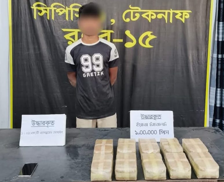 গত ০৭ জানুয়ারি ২০২৬ খ্রিঃ তারিখ সিপিসি-১ (টেকনাফ ক্যাম্প), র্যাব-১৫, কক্সবাজার এর একটি চৌকস আভিযানিক দল কক্সবাজার জেলার টেকনাফ মডেল থানাধীন বাহারছড়া ইউপির নোয়াখালী পাড়া সাকিনস্থ টেকনাফ টু কক্সবাজার গামী মেরিন ড্রাইভ সড়কের ২শ গজ পূর্ব পাশে জনৈক কাদের এর জমির বর্গা চাষী মোহাম্মদ হাকিম এর পানের বরজের ভিতর অভিযান পরিচালনা করে উপস্থিত সাক্ষীদের উপস্থিতিতে মাটির নিচ হতে ধৃত আসামী মোহাম্মদ হাকিম (২৩) এর নিজ হাতে বাহির করে দেওয়া মতে ক) ০১ (এক) টি সাদা পলিথিনের বস্তা দ্বারা মোড়ানো ১০ (দশ) টি প্যাকেট, যাহার প্রতি প্যাকেটের ভিতর ৫০ (পঞ্চাশ) টি করে মোট ৫০(৫০×১০)=৫০০টি ছোট বায়ুরোধক জিপারযুক্ত পলি প্যাকেট, প্রতিটি পলি প্যাকেটে ২০০ (দুইশত) পিস করে মোট (২০০×৫০০)=১,০০,০০০ (এক লক্ষ) পিস ইয়াবা ট্যাবলেট ও ০১ (এক) টি এন্ড্রয়েড মোবাইল ফোন সেটসহ ০১ জন মাদক কারবারীকে আটক করতে সক্ষম হয়। উদ্ধারকৃত আলমত সমূহঃইয়াবা ট্যাবলেট ১,০০,০০০ (এক লক্ষ) পিস।Oppo এন্ড্রয়েড মোবাইল ফোনসেট - ০১ (এক) টি।গ্রেফতারকৃত মাদক কারবারীর বিস্তারিত পরিচয়ঃমোহাম্মদ হাকিম (২৩), পিতা-নুরুল ইসলাম, মাতা- আনোয়ারা বেগম, সাং-নোয়াখালী পাড়া, ৯নং ওয়ার্ড, বাহারছড়া ইউপি, থানা-টেকনাফ, জেলা-কক্সবাজার। গ্রেফতারকৃত আসামীর বিরুদ্ধে পরবর্তী আইনানুগ ব্যবস্থা গ্রহণ প্রক্রিয়াধীন রয়েছে।