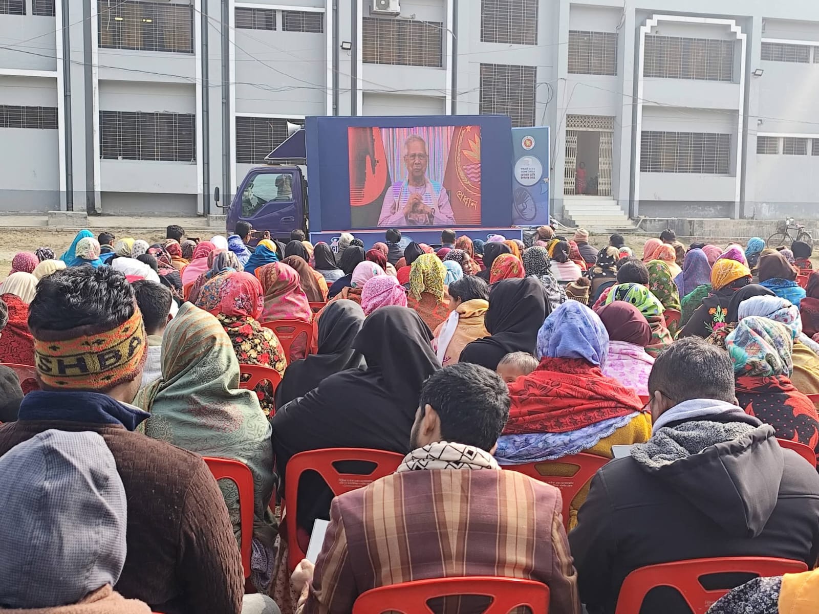 আজকে ৮ই জানুয়ারি ২০২৬ নওগাঁ জেলার পত্নীতলা উপজেলায় সাধারণ জনগণ, বিশেষ করে খেটে খাওয়া মানুষের মাঝে গণভোটের গুরুত্ব ও জুলাই সনদ বাস্তবায়ন সম্পর্কে সচেতনতা বৃদ্ধিতে মাঠপর্যায়ে কার্যক্রম চালানো হয়েছে। ভোটের গাড়ির মাধ্যমে গ্রাম থেকে গ্রামে ঘুরে এ কার্যক্রম পরিচালনা করা হচ্ছে।