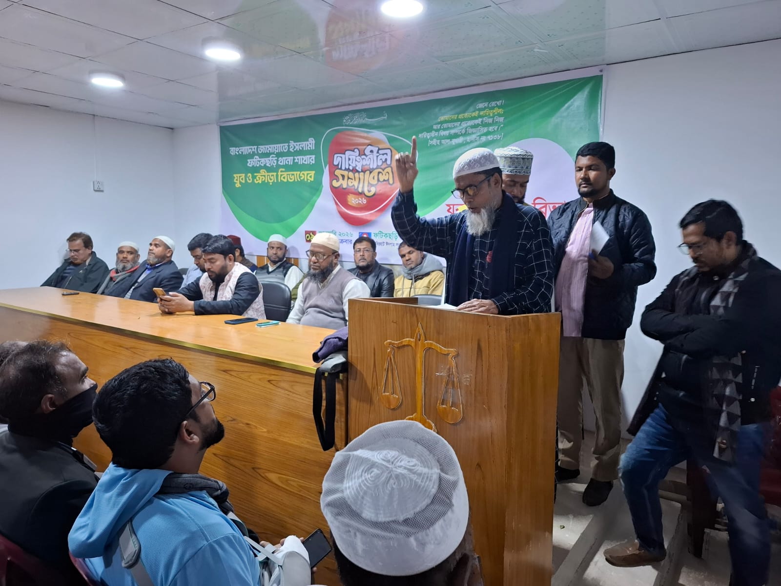 চট্টগ্রামের ফটিকছড়িতে বাংলাদেশ জামায়াতে ইসলামীর অংগ সংগঠন যুব ও ক্রীড়া বিভাগের দায়িত্বশীলদের নিয়ে আসন্ন নির্বাচন উপলক্ষ্যে এক সমাবেশ শুক্রবার সংগঠনটির ফটিকছড়ি উপজেলার নিজস্ব অফিস হল রুমে অনুষ্ঠিত হয়। এতে প্রধান অতিথি ছিলেন বাংলাদেশ জামায়াত ইসলামী চট্টগ্রাম উত্তরজেলা সেক্রেটারী আব্দুল জব্বার। বিশেষ অতিথি ছিলেন ফটিকছড়ি থানা আমির নাজিম উদ্দীন ইমু ও ফটিকছড়ি জামায়াতে ইসলামীর শুরা সদস্যবৃন্দ। সভাপতিত্ব করেন ফটিকছড়ি যুব ও ক্রীড়া বিভাগের সভাপতি নবীর হোসেন মাসুদ। অনুষ্ঠানটি পরিচালনা করেন যুব ও ক্রীড়া বিভাগের থানা সেক্রেটারী বায়েজিদ হাসান মুরাদ। এতে যুব বিভাগের বিভিন্ন ইউনিয়ন ও পৌরসভার দায়িত্বশীলগণ উপস্থিত ছিলেন।