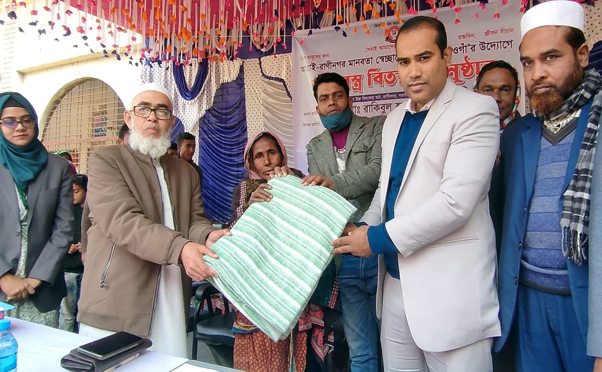 রাণীনগরে স্বেচ্ছাসেবী সংগঠনের শীতবস্ত্র বিতরণ