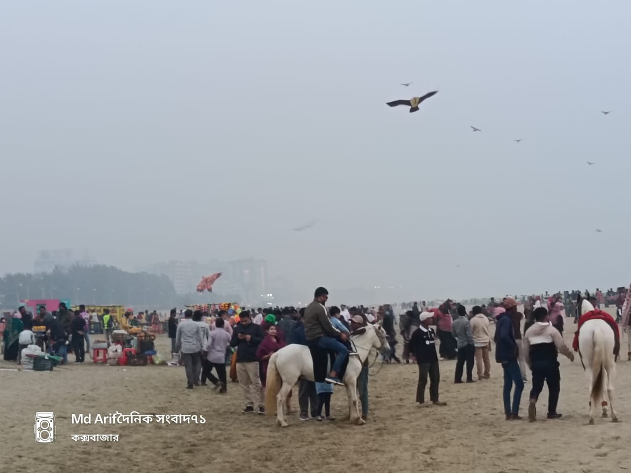 দেশের অন্য জনপ্রিয় সমুদ্র সৈকত কক্সবাজার।রবিবার (১১ই জানুয়ারী)২৬ইং নতুন বছরের শুরু ও বিভিন্ন শিক্ষা প্রতিষ্ঠান বন্ধ থাকায় সৈকতের লাবনী পয়েন্ট, সুগন্ধাও কলাতলী পয়েন্টজুড়ে ছিল ভ্রমনে আসা পর্যটকদের উপচে পড়া ভিড়।শীত ও হালকা হিমেল আবহাওয়া,বিকেলের সময় সৈকতের প্রাকৃতিক সৌন্দর্য, ঢেউয়ের গর্জন আর গোধূলির সূর্যাস্ত উপভোগ করতে হাজারো মানুষ দেখা গেছে বালুকাবেলায়।ঢাকা থেকে পরিবার নিয়ে ঘুরতে আসা পর্যটকরা বলেন,আমাদের দিকে প্রচন্ড শীত পড়তে শুরু করেছে।তাই কক্সবাজারে বেড়ানোর এটি একদম উপযুক্ত সময়।এখানে শীত থাকলেও সময়টা দারুণ কাটছে।গাজীপুর থেকে বেড়াতে আসা পর্যটক বলেন ,সৈকতে ভ্রাম্যমাণ ব্যবসায়ীদের নিয়ন্ত্রণে কার্যকর ব্যবস্হার দাবি জামান।তিনি বলেন, এই সৈকত আমাদের সম্পদ।সুযোগ পেলেই এখানে আসি। কিন্তু ফটোগ্রাফার আর খাবার বিক্রেতাদের নানান বিড়ম্বনার কারণে নিজের মতো সময় কাটানোর কঠিন হয়ে যায়।ওরা থাকুক ,তবে সুন্দর একটি ব্যবস্হাপনা দরকার।সৈকত এলাকায় নিরাপত্তা ও শৃঙ্খলা বজায় রাখতে টুরিস্ট পুলিশের সক্রিয় তৎপরতা চোখে পড়ে।