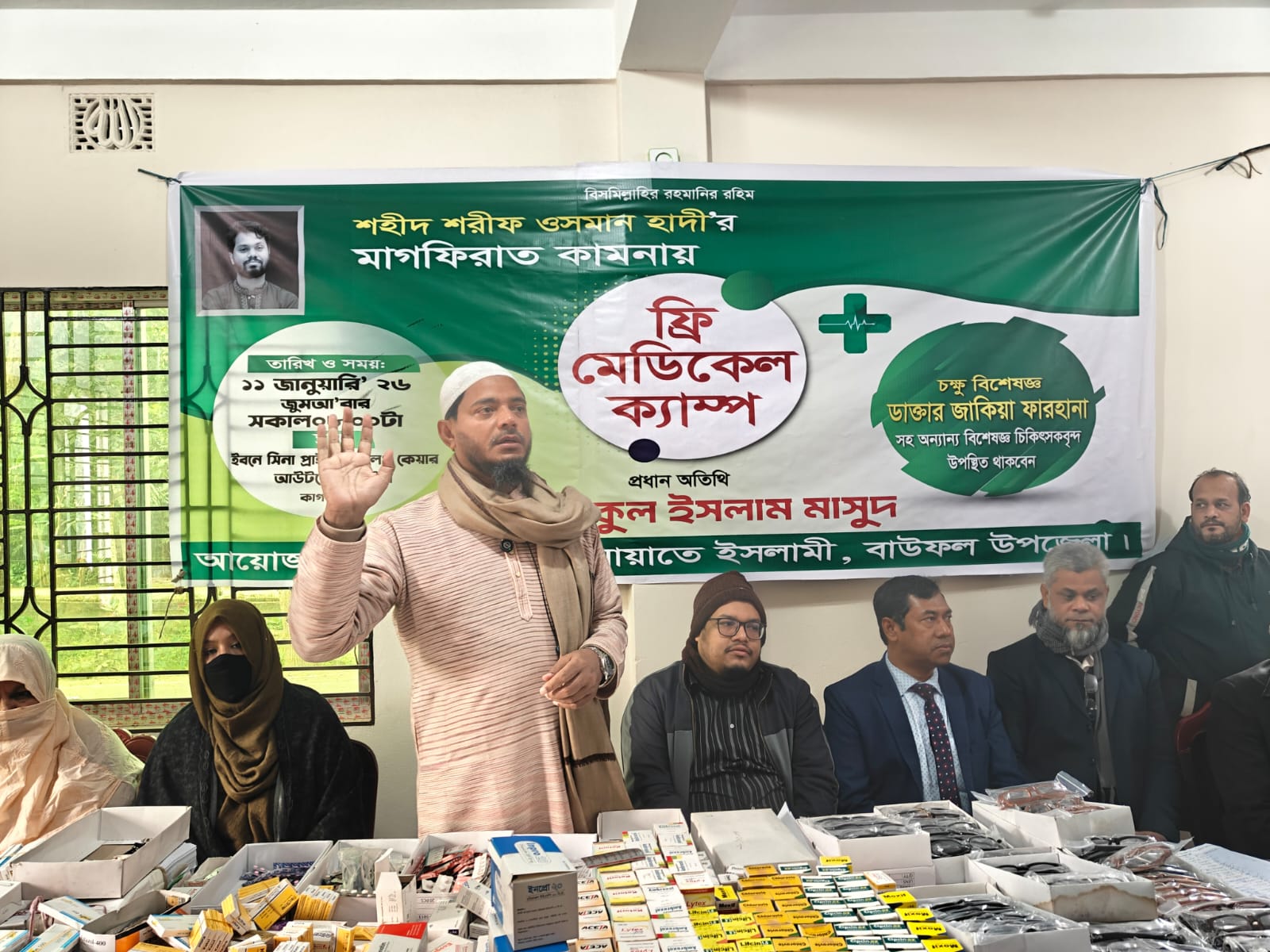 আজ রোববার ইবনে সিনা প্রাইমারি আউটডোর হেলথ কেয়ার সেন্টারে সকাল থেকেই চিকিৎসা নিতে আসা মানুষের ব্যাপক উপস্থিতি লক্ষ্য করা যায়।ক্যাম্পে বৃদ্ধ, নারী, তরুণ-তরুণী ও শিশু—সব বয়সী রোগীরা বিনামূল্যে চিকিৎসা সেবা গ্রহণ করেন। চক্ষু বিশেষজ্ঞ ডা. জাকিয়া ফারহানাসহ একদল অভিজ্ঞ ও মানবিক চিকিৎসক দিনব্যাপী রোগীদের চিকিৎসা, পরামর্শ ও প্রয়োজনীয় ওষুধ প্রদান করেন। অর্থাভাবে দীর্ঘদিন চিকিৎসা থেকে বঞ্চিত মানুষজন এই সেবায় উপকৃত হন।চোখের চিকিৎসা নিতে আসা ৭৫ বছর বয়সী বৃদ্ধ আব্দুল করিম বলেন,“বয়সের কারণে চোখে ভালো দেখি না। টাকা না থাকায় ডাক্তার দেখাতে পারিনি। আজ ফ্রি চিকিৎসা পেয়ে অনেক স্বস্তি লাগছে।মধ্যবয়সী রওশন আরা বেগম বলেন,“আমাদের মতো গরিব মানুষের জন্য এমন ফ্রি ক্যাম্প অনেক বড় সহায়তা।কলেজশিক্ষার্থী জান্নাতুল ফেরদৌস বলেন,“গ্রাম পর্যায়ে বিশেষজ্ঞ ডাক্তারের সেবা পাওয়া সত্যিই আশার কথা।দিনমজুর সাইফুল ইসলাম বলেন,“কাজ বাদ দিয়ে হাসপাতালে যাওয়া সম্ভব হয় না। এখানে এসে বিনা খরচে চিকিৎসা পেয়ে উপকার হয়েছে।আরেক তরুণী বলেন,“শহীদ ওসমান হাদীর নামে এই উদ্যোগ মানবিকতার দারুণ দৃষ্টান্ত।আয়োজকরা জানান, ক্যাম্পে উচ্চ রক্তচাপ, ডায়াবেটিস ও ঠান্ডাজনিত রোগসহ বিভিন্ন সমস্যার চিকিৎসা ও ওষুধ বিনামূল্যে দেওয়া হচ্ছে। পাশাপাশি চশমা ও চোখের ড্রপসহ প্রয়োজনীয় সেবাও পাচ্ছেন রোগীরা।এ সময় প্রধান অতিথি বাউফলের জামায়াতের এমপি প্রার্থী ড. শফিকুল ইসলাম মাসুদ বলেন,শহীদ ওসমান হাদীর স্মৃতি আমাদের দায়িত্বের কথা মনে করিয়ে দেয়। মানুষের কষ্ট লাঘব করাই আমাদের মূল লক্ষ্য। যতদিন আল্লাহ শক্তি দেবেন, ততদিন সাধারণ মানুষের চিকিৎসা সেবায় কাজ করে যাব।
