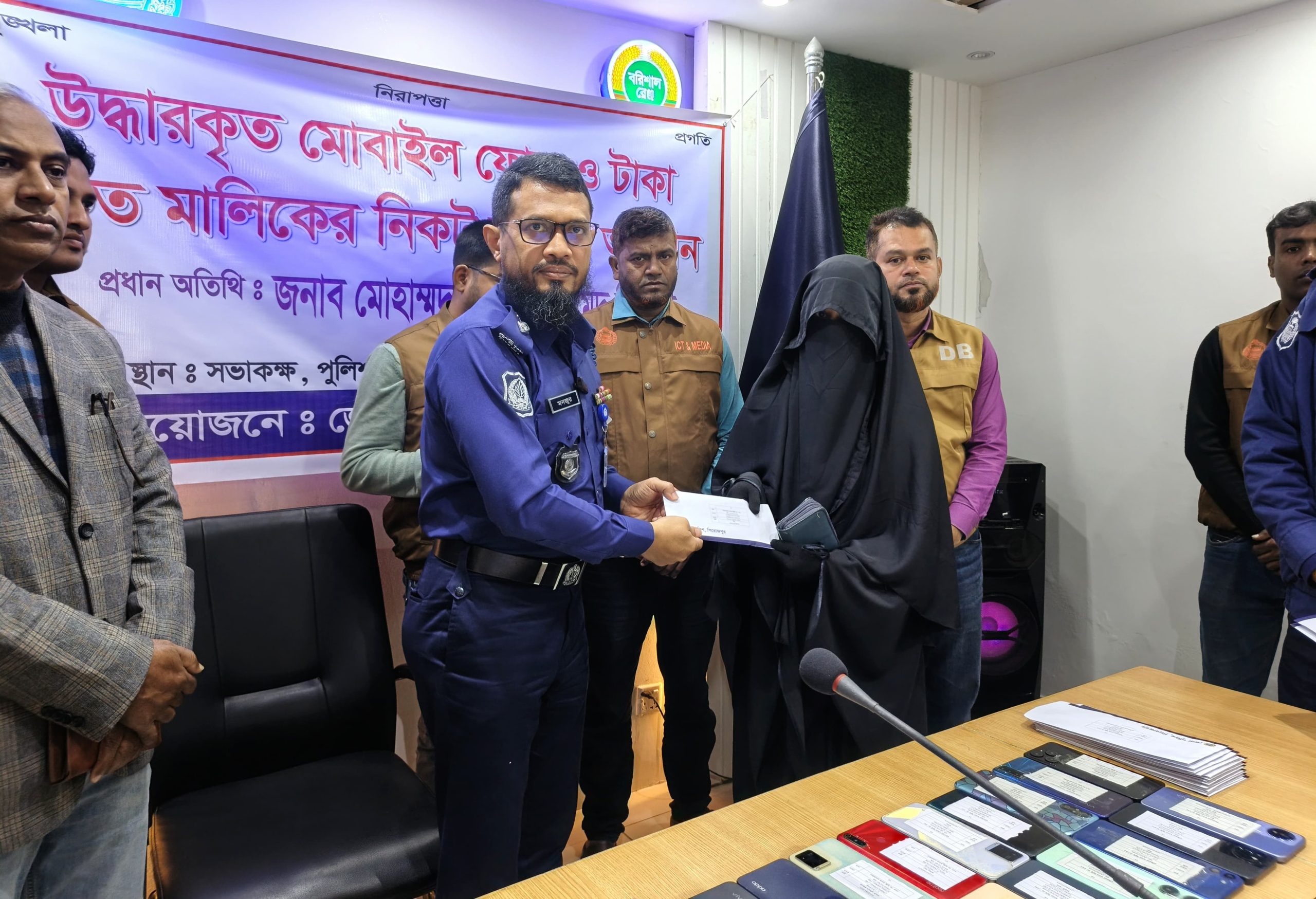 পিরোজপুরে হারানো ২২টি মোবাইল ও বিকাশ প্রতারণার টাকা উদ্ধার করল জেলা পুলিশ