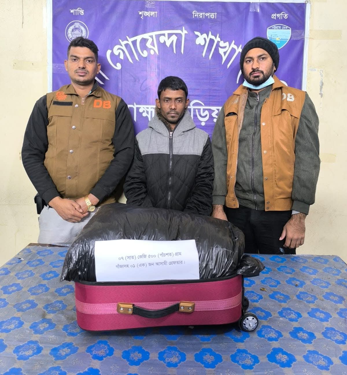 ব্রাহ্মণবাড়িয়ায় ডিবি পুলিশের অভিযানে সাড়ে ৭ কেজি গাঁজাসহ এক মাদক কারবার একে আটক করা হয়েছে সকাল ৮.৩০মিনিটে ১২/১/২০২৬ ঘটিকায় ব্রাহ্মণবাড়িয়া সদর উপজেলা সুলতানপুর এলাকা হতে আখউড়া উপজেলা মনিয়দন গ্রামের গফুর মিয়ার ছেলে মনির হোসেন (৩০) গাজা সহ আটক করা হয়। ডিবি পুলিশের প্রেস বিজ্ঞপ্তিতে জানানো হয়, ব্রাহ্মণবাড়িয়া জেলা গোয়েন্দা ডিবি পুলিশ সুলতানপুর এলাকা হতে (ডিবি) পুলিশের একটি টিম গোপন সংবাদের ভিত্তিতে অভিযান পরিচালনা করে সদর থানাধীন সুলতানপুর এলাকা হতে ০৭ (সাত) কেজি ৫০০ গ্রাম গাঁজাসহ ০১ জন মাদক কারবারীকে গ্রেফতার করে। উদ্ধারকৃত মালামাল বিধি মোতাবেক জব্দ তালিকা মূলে জব্দ করা হয়। গ্রেফতার করা হয় এক মাদক কারবারি কে।
