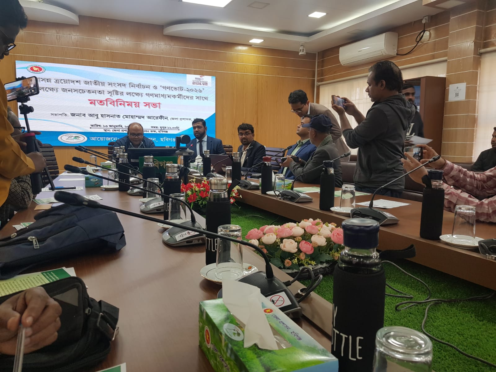 আসন্ন ২০২৬ সালের জাতীয় সংসদ নির্বাচন ও হা/না ভোটকে সামনে রেখে জনসচেতনতা বৃদ্ধির লক্ষ্যে হবিগঞ্জে ইলেকট্রনিক ও প্রিন্ট মিডিয়ার সাংবাদিকদের সঙ্গে আলোচনা সভা অনুষ্ঠিত হয়েছে।মঙ্গলবার ১৩ জানুয়ারি ২০২৬ দুপুরে জেলা প্রশাসকের সম্মেলন কক্ষে আলোচনা সভা অনুষ্ঠিত হয়। সভায় সভাপতিত্ব করেন হবিগঞ্জের জেলা প্রশাসক আবু হাসনাত মোহাম্মদ আরেফীন।মতবিনিময় সভায় জেলা প্রশাসক বলেন, অবাধ, সুষ্ঠু ও গ্রহণযোগ্য নির্বাচন নিশ্চিত করতে গণমাধ্যমের ভূমিকা অত্যন্ত গুরুত্বপূর্ণ।তিনি হা/না ভোটকে প্রাধান্য দিয়ে সাংবাদিকদের মাধ্যমে ভোটারদের মধ্যে সচেতনতা সৃষ্টি করা সম্ভব মনে করেন । তিনি নির্বাচনকালীন সময়ে দায়িত্বশীল সাংবাদিকতার ওপর গুরুত্বারোপ করেন।এ সময় উপস্থিত ছিলেন জেলা তথ্য কর্মকর্তা, হবিগঞ্জ প্রেসক্লাবের সাবেক সভাপতি ও দৈনিক ইনকিলাবের হবিগঞ্জ প্রতিনিধি, এক্সপ্রেস পত্রিকার সম্পাদকসহ স্থানীয় ও জাতীয় বিভিন্ন গণমাধ্যমের প্রতিনিধিরা। তাদের মধ্যে আরও উপস্থিত ছিলেন— হবিগঞ্জ প্রেসক্লাবের সাবেক সভাপতি মনসর উদ্দিন ইকবাল, সাবেক সভাপতি গোলাম মোস্তাফা রফিক, সাবেক সভাপতি ও দৈনিক ইনকিলাব হবিগঞ্জ প্রতিনিধি ফজলুর রহমান, রহুল হাসন শরীফ,দৈনিক যুগান্তর প্রতিনিধি সৈয়দ এখলাছুর রহমান, দ্য ডেইলি অবজারভারের হবিগঞ্জ প্রতিনিধি সৈয়দ মশিউর রহমান, বাংলাদেশের খবর হবিগঞ্জ প্রতিনিধি ফয়সল চৌধুরী, জাকারিয়া চৌধুরী, মীর আব্দুল কাদির, দৈনিক প্রভাতী বাংলাদেশ জেলা প্রতিনিধি আলী আকবর শ্যামল, বাসস প্রতিনিধি মোঃ নুর উদ্দিন, দৈনিক বাংলাদেশ সমাচার হবিগঞ্জ প্রতিনিধি আব্দুল হান্নান চৌধুরীসহ অন্যান্য গণমাধ্যমকর্মীরা।সভায় নির্বাচন ঘিরে সাংবাদিকদের বিভিন্ন মতামত ও পরামর্শ গ্রহণ করা হয়।এবং হবিগঞ্জ জেলায় সর্বসাধারণ মানুষের মধ্যে হা/না ভোটের গুরুত্ব বোঝানোর জন্য সাংবাদিকদের উপর অনেকটা দায়িত্ব অর্পণ করেন ।
