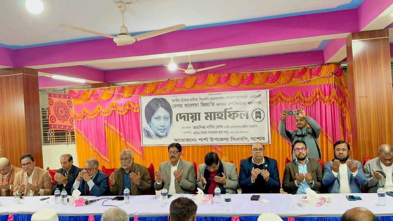 যশোর, শার্শা উপজেলায় নাভারনে দেশনেত্রী মরহুমা বেগম খালেদা জিয়ার মাগফিরাত কামনা ও দোয়া মাহফিল অনুষ্ঠিত