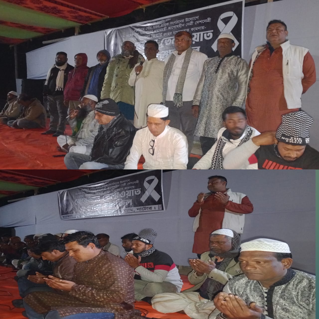 নাটোরের বড়াইগ্রামে সাবেক তিনবারের প্রধানমন্ত্রী ও বিএনপি চেয়ারপার্সন বেগম খালেদা জিয়ার রুহের মাগফিরাত কামনায় কোরআন তেলাওয়াত ও দোয়া মাহফিল অনুষ্ঠিত হয়েছে।১৬ জানুয়ারি শুক্রবার বড়াইগ্রাম পৌর এলাকার বিভিন্ন শ্রমিক সংগঠনের উদ্যোগে আয়োজিত এই ধর্মীয় কর্মসূচিতে শ্রমিক নেতাকর্মীসহ নানা শ্রেণি-পেশার বিপুল সংখ্যক মানুষ অংশ নেন।