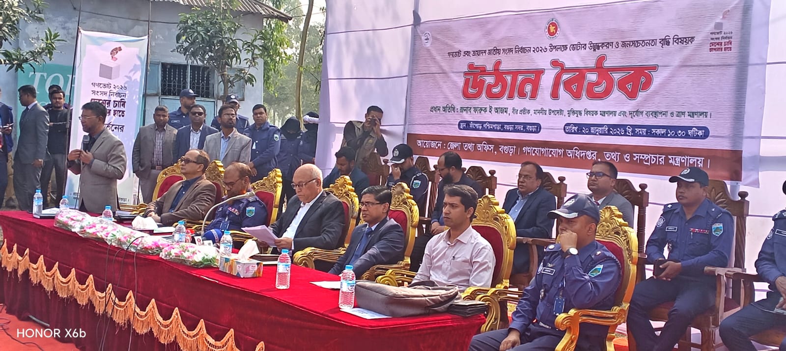 উঠান বৈঠকে প্রধান অতিথি হিসেবে উপস্থিত ছিলেন জনাব ফারুক ই আজম, বীর প্রতীক, মাননীয় উপদেষ্টা, মুক্তিযুদ্ধ বিষয়ক মন্ত্রণালয় এবং দুর্যোগ ব্যবস্থাপনা ও ত্রাণ মন্ত্রণালয়।প্রধান অতিথির বক্তব্যে জনাব ফারুক ই আজম, বীর প্রতীক বলেন,গণভোটে ‘হ্যাঁ’ ভোট প্রদান মানে হলো দেশের গণতান্ত্রিক অগ্রযাত্রাকে আরও শক্তিশালী করা। হ্যাঁ ভোট জনগণের মতামতের প্রতিফলন এবং রাষ্ট্র পরিচালনায় জনগণের সরাসরি অংশগ্রহণ নিশ্চিত করে।তিনি বলেন,হ্যাঁ’ ভোটের মাধ্যমে জনগণ উন্নয়ন, স্থিতিশীলতা ও ভবিষ্যৎ প্রজন্মের জন্য একটি শক্তিশালী রাষ্ট্র কাঠামোর পক্ষে অবস্থান নেয়। এটি দেশের সাংবিধানিক ধারাবাহিকতা বজায় রাখে এবং গণতন্ত্রকে প্রাতিষ্ঠানিক রূপ দিতে সহায়তা করে।প্রধান অতিথি আরও বলেন,মুক্তিযুদ্ধের মূল চেতনাই ছিল জনগণের মতের স্বাধীনতা। গণভোটে হ্যাঁ ভোট দেওয়া সেই চেতনারই বাস্তব প্রয়োগ। এটি শান্তিপূর্ণভাবে মত প্রকাশের সর্বোচ্চ মাধ্যম।তিনি ভোটারদের উদ্দেশে আহ্বান জানিয়ে বলেন, গুজব ও বিভ্রান্তিকর তথ্য এড়িয়ে সঠিক ও বাস্তব তথ্যের ভিত্তিতে সিদ্ধান্ত নিতে হবে এবং নির্ভয়ে ভোটকেন্দ্রে গিয়ে ‘হ্যাঁ’ ভোট প্রদান করতে হবে। এতে দেশ ও জাতির কল্যাণ নিশ্চিত হবে।তিনি আশাবাদ ব্যক্ত করে বলেন, জনগণের সচেতন অংশগ্রহণের মাধ্যমে গণভোট ও ত্রয়োদশ জাতীয় সংসদ নির্বাচন অবাধ, সুষ্ঠু ও গ্রহণযোগ্য হবে।বিশেষ অতিথি হিসেবে উপস্থিত ছিলেন বগুড়া জেলা প্রশাসক তৌফিকুর রহমান। তিনি বলেন, ভোটারদের নিরাপত্তা ও সুষ্ঠু পরিবেশ নিশ্চিত করতে জেলা প্রশাসন সর্বাত্মক প্রস্তুতি গ্রহণ করেছে। ভোটার উপস্থিতি বাড়াতে এ ধরনের উঠান বৈঠক অত্যন্ত কার্যকর ভূমিকা রাখছে বলে তিনি উল্লেখ করেন।এছাড়াও উপস্থিত ছিলেন বগুড়া জেলার পুলিশ সুপার শাহাদাত, উপজেলা নির্বাহী কর্মকর্তা আব্দুল ওয়াজেদ, জেলা তথ্য অফিসের কর্মকর্তাবৃন্দ, স্থানীয় জনপ্রতিনিধি, গণ্যমান্য ব্যক্তিবর্গ এবং এলাকার সাধারণ ভোটাররা।উল্লেখ্য, জেলা তথ্য অফিস,বগুড়া এর আয়োজনে এবং গণযোগাযোগ অধিদপ্তর, তথ্য ও সম্প্রচার মন্ত্রণালয় এর সহযোগিতায় এ উঠান বৈঠক অনুষ্ঠিত হয়।