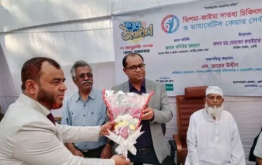 ফেনী জেলার রাজাপুর সড়কের বানাপুকুর এলাকায় আনুষ্ঠানিকভাবে উদ্বোধন করা হয়েছে তিশমা-জাইমা দাতব্য চিকিৎসালয় ও ডায়াবেটিক কেয়ার সেন্টার। স্থানীয় গণ্যমান্য ব্যক্তিবর্গ, চিকিৎসক, সামাজিক সংগঠনের প্রতিনিধি ও সাধারণ মানুষের উপস্থিতিতে এক অনাড়ম্বর কিন্তু তাৎপর্যপূর্ণ অনুষ্ঠানের মাধ্যমে এই চিকিৎসালয়ের কার্যক্রম শুরু হয়।উদ্বোধনী অনুষ্ঠানে বক্তারা বলেন, বর্তমান সময়ে ডায়াবেটিসসহ নানা দীর্ঘমেয়াদি রোগে আক্রান্ত মানুষের সংখ্যা দ্রুত বাড়ছে। বিশেষ করে গ্রামের ও নিম্নআয়ের মানুষের জন্য নিয়মিত চিকিৎসা ও পরীক্ষা-নিরীক্ষা করানো অনেক সময় কষ্টসাধ্য হয়ে পড়ে।এই বাস্তবতাকে সামনে রেখে মানবিক চিন্তা থেকেই তিশমা-জাইমা দাতব্য চিকিৎসালয় ও ডায়াবেটিক কেয়ার সেন্টার প্রতিষ্ঠা করা হয়েছে।চিকিৎসালয় সূত্রে জানা যায়, এখানে স্বল্পমূল্যে সাধারণ রোগের চিকিৎসা, ডায়াবেটিস পরীক্ষা, নিয়মিত পরামর্শ, ওষুধ সেবা এবং প্রয়োজন অনুযায়ী বিশেষজ্ঞ চিকিৎসকের পরামর্শ প্রদান করা হবে। পাশাপাশি দরিদ্র ও অসচ্ছল রোগীদের জন্য বিনামূল্যে চিকিৎসা সেবার ব্যবস্থাও রাখা হয়েছে।অনুষ্ঠানে প্রধান অতিথি তার বক্তব্যে বলেন, “এই ধরনের দাতব্য চিকিৎসালয় সমাজের জন্য অত্যন্ত প্রয়োজনীয়। সরকারি হাসপাতালের পাশাপাশি বেসরকারি ও সামাজিক উদ্যোগগুলো স্বাস্থ্যসেবার পরিধি বাড়াতে গুরুত্বপূর্ণ ভূমিকা রাখে।তিনি তিশমা-জাইমা দাতব্য চিকিৎসালয় ও ডায়াবেটিক কেয়ার সেন্টারের উত্তরোত্তর সফলতা কামনা করেন।স্থানীয় বাসিন্দারা জানান, এই এলাকায় দীর্ঘদিন ধরে একটি মানসম্মত চিকিৎসাকেন্দ্রের অভাব ছিল। নতুন এই চিকিৎসালয় চালু হওয়ায় এখন আশপাশের মানুষ সহজেই চিকিৎসাসেবা নিতে পারবেন, যা তাদের জন্য বড় স্বস্তির বিষয়।শেষে দোয়া ও মোনাজাতের মাধ্যমে উদ্বোধনী অনুষ্ঠানের সমাপ্তি ঘোষণা করা হয়।আয়োজকরা জানান, ভবিষ্যতে চিকিৎসালয়ের সেবার পরিধি আরও বাড়ানো হবে এবং আধুনিক চিকিৎসা সরঞ্জাম সংযোজনের পরিকল্পনাও রয়েছে।