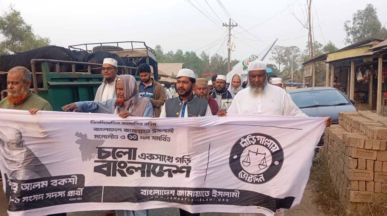 আসন্ন জাতীয় সংসদ নির্বাচনকে সামনে রেখে গাজীপুর-১ সংসদীয় আসনে ব্যাপক তৎপরতা শুরু করেছে বাংলাদেশ জামায়াতে ইসলামী। আজ (শনিবার) সকালে নির্বাচনী এলাকার বিভিন্ন গুরুত্বপূর্ণ পয়েন্টে দলটির মনোনীত ও ১০ দল সমর্থিত সংসদ সদস্য পদপ্রার্থী মো: শাহ আলম বকশীর সমর্থনে এক বিশাল প্রচারণা ও গণসংযোগ কর্মসূচি পালিত হয়।প্রচারণায় অংশ নেওয়া নেতা-কর্মীরা “চলো একসাথে গড়ি বাংলাদেশ” স্লোগান সম্বলিত ব্যানার নিয়ে রাজপথে নামেন। এসময় তারা সাধারণ মানুষের মাঝে নির্বাচনী লিফলেট বিতরণ করেন এবং জামায়াতের নির্বাচনী প্রতীক ‘দাঁড়িপাল্লা’ মার্কায় ভোট চেয়ে দোয়া ও সমর্থন কামনা করেন।গণসংযোগকালে স্থানীয় জামায়াত নেতারা বলেন, “একটি সমৃদ্ধ ও ইনসাফভিত্তিক বাংলাদেশ গড়ার লক্ষ্যে আমরা রাজপথে আছি। গাজীপুর-১ আসনের মানুষের অধিকার আদায় এবং এলাকার সুষম উন্নয়নের জন্য শাহ আলম বকশীর কোনো বিকল্প নেই। আমরা বিশ্বাস করি, সাধারণ মানুষ পরিবর্তনের পক্ষে রায় দিয়ে আমাদের জয়যুক্ত করবেন।