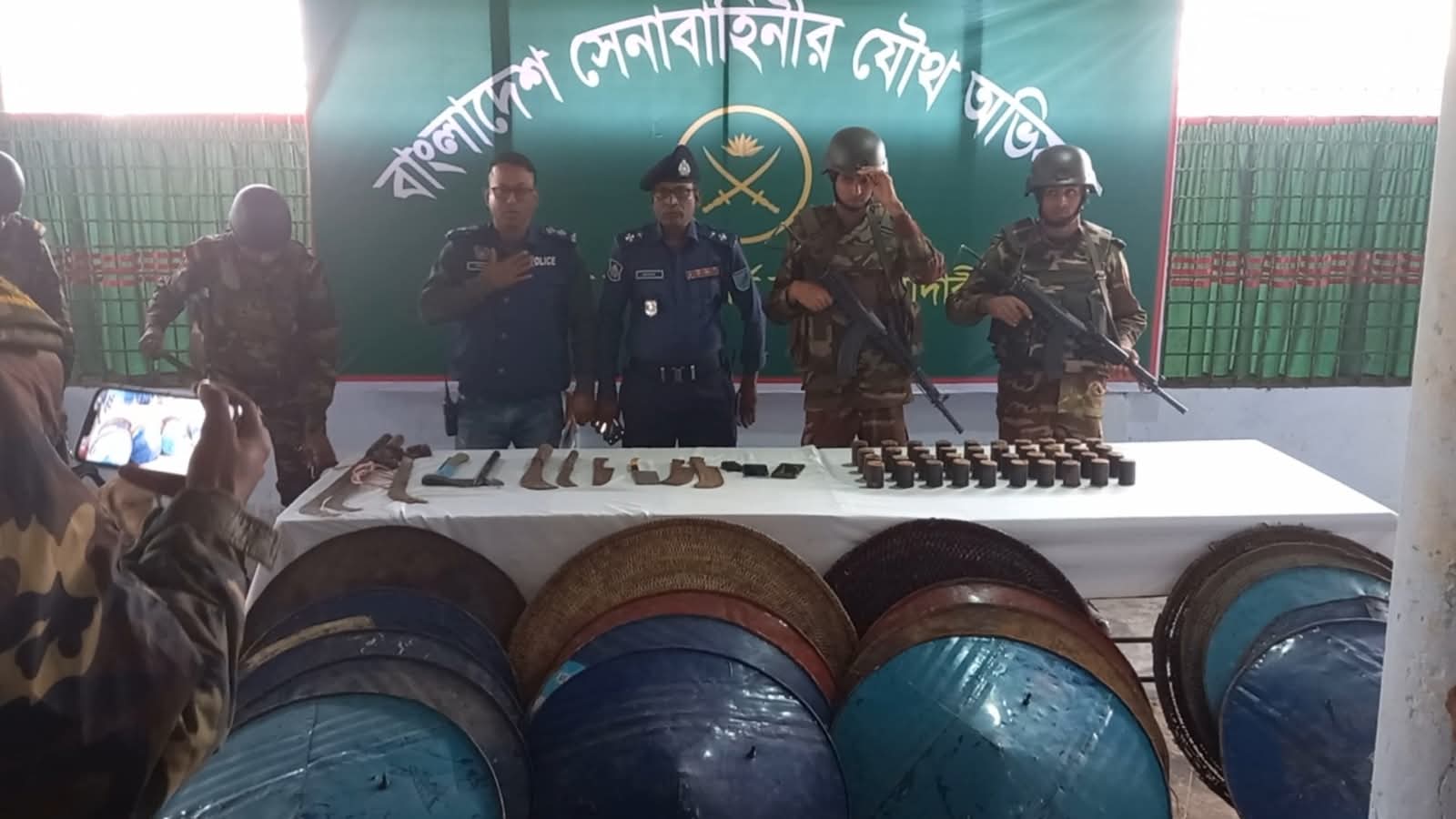মাদারীপুর সদরের সেনা ক্যাম্পের ক্যাপ্টেন শাফিন সারোয়ার এবং ক্যাপ্টেন মোনায়েম শারজিল জানান, না*শ*ক*তা ও স*ন্ত্রা*সী কর্মকান্ড করার উদ্দেশ্যে সদর উপজেলার বড়মেহের গ্রামের ইদ্রিস হাওলাদার তার নিজ বাড়ির বাগান ও আশাপাশে বিপুল পরিমান দেশীয় অস্ত্র ও গোলাবারুদ মজুদ রেখেছে এমন সংবাদের ভিত্তিতে অভিযান চালানো হয়। এ সময় সেনাবাহিনীর উপস্থিতি টের পেয়ে পালিয়ে যায় ইদ্রিস হাওলাদার ও তার সঙ্গীয় লোকজন। পরে তার বাড়ির আশপাশে তল্লাসি চালিয়ে ৪০টি ককটেল, ৯৪টি বল্লম, ৩৩টি ঢাল, ৪টি চাপাতি, ৩টি রামদা, ২টি চাইনিজ কুড়ালসহ বিপুল পরিমান দেশিয় অস্ত্র উদ্ধার করা হয়। পরে খবর দেয়া হয় সদর মডেল থানা পুলিশকে। অভিযুক্ত পলাতক ব্যক্তির বিরুদ্ধে আইনী ব্যবস্থা নেয়ার কথাও জানায় সেনাবাহিনীর কর্মকর্তারা এমন অভিযানকে সাধুবাদ জানিয়েছেন এলাকার সাধারণ জনগণ। তারা সেনাবাহিনীর তৎপরতার ভূয়সী প্রশংসা করেন।
