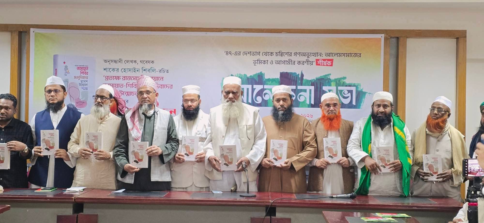 প্রত্যক্ষ রাজসাক্ষীর বয়ানে জামায়াত-শিবির-মওদুদিবাদের মুখোশ উন্মোচন’ প্রামান্য গ্রন্থের মোড়ক উন্মোচন মওদুদীবাদী জামায়াতের বিষয়ে জাতিকে সতর্ক করা আলেমদের ধর্মীয় দায়িত্ব মওদুদীবাদী জামায়াতের সঙ্গে আলেমদের বিরোধ রাজনৈতিক নয়, আদর্শিক। তাদের ভুল আকিদার বিষয়ে জাতিকে সতর্ক করা আলেমদের ধর্মীয় দায়িত্ব। যুগে যুগে আলেমরা বক্তব্য-লিখনীর মাধ্যমে সেই ধর্মীয় দায়িত্ব পালন করেছেন।শনিবার (২৪ জানুয়ারি) ‘৪৭-এর দেশভাগ থেকে চব্বিশের গণঅভ্যুত্থান: আলেমসমাজের ভূমিকা ও আগামীর করণীয়’ শীর্ষক আলোচনা সভায় বক্তারা এসব কথা বলেন। ইসলামী আকিদা সংরক্ষণ কমিটির আহ্বায়ক মুফতি রিজওয়ান রফীকির সভাপতিত্বে আয়োজিত এ অনুষ্ঠানে অনুসন্ধানী লেখক, গবেষক শাকের হোসাইন শিবলি রচিত ‘প্রত্যক্ষ রাজসাক্ষীর বয়ানে জামায়াত-শিবির-মওদুদিবাদের মুখোশ উন্মোচন’ প্রামান্য গ্রন্থের মোড়ক উন্মোচন করা হয়।এতে বক্তব্য রাখেন, বর্ষীয়ান রাজনীতিবিদ জমিয়তে উলামায়ে ইসলাম বাংলাদেশের সিনিয়র সহ সভাপতি মাওলানা আবদুর রব ইউসুফী, হেফাজতে ইসলাম বাংলাদেশের যুগ্ম মহাসচিব মাওলানা মীর ইদ্রিস, জমিয়তে উলামায়ে ইসলামের (একাংশ) মহাসচিব মাওলানা গোলাম মহিউদ্দিন ইকরাম, বাংলাদেশ খেলাফত আন্দোলনের সিনিয়র নায়েবে আমির মাওলানা আজম খান,জমিয়তের প্রচার সম্পাদক মুফতি ইমরানুল বারী সিরাজী, ইসলামী ঐক্যজোটের সহ প্রচার সম্পাদক মাওলানা মাহমুদুল হক হাফেজ্জী, যুব জমিয়তের সাংগঠনিক সম্পাদক চৌধুরী নাসির আহমদ, তরুণ বুদ্ধিজীবি জবান সম্পাদক রেজাউল করীম রনি, ছনটেক মাদ্রাসার শাইখুল হাদিস মাওলানা আবদুল আউয়াল, কওমি মাদ্রাসা শিক্ষক সমিতির মহাসচিব মাওলানা আতাউর রহমান আতীকি তেজগাঁও মাদ্রাসার মুহাদ্দিস মাওলানা লিয়াকত আলী মাসউদ, আরজাবাদ মাদ্রাসার মুহাদ্দিস মাওলানা সাইফুদ্দীন ইউসুফ ফাহিম,লেখক অনুবাদক মাওলানা আবদুল্লাহ আল ফারুক প্রমুখ।অনুষ্ঠানে বক্তারা বলেন, মওদুদীবাদী জামায়াত-শিবির সবসময় ইসলামের নামে ধর্মপ্রাণ সাধারণ মুসলমান ও জনগণকে বিভ্রান্ত করে আসছে। জামায়াত এক সময় ‘আকিমুদ্দীন’ তথা দ্বীন প্রতিষ্ঠার কথা বলতো, এখন তারা দলীয় লোগো থেকে সেই শব্দটি সরিয়ে ফেলেছে। তাদের নেতাদের সাম্প্রতিক বক্তব্যে এ কথা তারাই স্পষ্ট করেছে যে, জামায়াত ইসলাম প্রতিষ্ঠার নামে রাজনীতি করলেও আদর্শিকভাবে সে পথেই তারা নেই।জামায়াত মদিনার নয় বরং মওদুদীর ইসলাম কায়েম করতে চায় উল্লেখ করে তারা বলেন, মওদুদীবাদী জামায়াত প্রতিষ্ঠা থেকেই ইসমতে আম্বিয়া (নবীদের পাপমুক্ত ও মর্যাদাশীল অবস্থান) এবং সাহাবীগণকে মিয়ারে হক (সত্যের মাপকাঠি) মানে না, ইসলাম বিষয়ে তাদের মৌলিক আকিদা-বিশ্বাসই বিশ্বাসই ঠিক নেই। এ কারণে