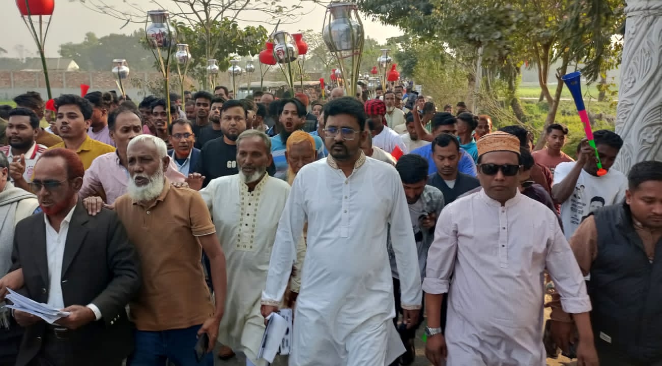 ত্রয়োদশ জাতীয় সংসদ নির্বাচন সামনে রেখে কুমিল্লার চান্দিনায় ভোটারদের দ্বারে দ্বারে ঘুরে কলস প্রতীকে ভোট চাইছেন বিএনপি থেকে সদ্য বহিষ্কৃত বিদ্রোহী ও স্বতন্ত্র প্রার্থী আতিকুল আলম শাওন। সোমবার (২৬ জানুয়ারি) বিকেলে চান্দিনা পৌরসভার ৩নং ওয়ার্ড হারং গ্রামে বাড়ি বাড়ি গিয়ে কলস প্রতীকের লিফলেট বিতরণ করে ভোট প্রার্থনা করেন তিনি। এসময় উপস্থিত নেতাকর্মী ও সমর্থকরা কলস প্রতীকের মিছিল মুখরিত করেন।