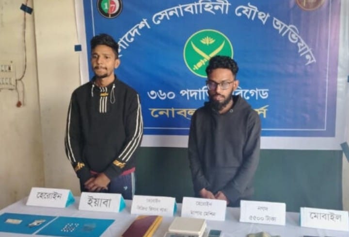 সুনামগঞ্জের ধর্মপাশায় সম্রাট আলী নামে এক পুলিশ কনস্টেবলসহ ২ জনকে আটক করা হয়েছে। শুক্রবার সকাল সাড়ে ৯টার দিকে সেনাবাহিনী ও পুলিশের যৌথ অভিযানে উপজেলার পাইকুরাটি ইউনিয়নের সুনই ব্রীজ সংলগ্ন এলাকা থেকে তাদের আটক করা হয়। এ সময় তাদের কাছ থেকে ১৯ পিস ইয়াবা ও ১ পুরিয়া হেরোইন উদ্ধার করা হয়। এ ছাড়াও হেরোইন বিক্রির ২টি হিসাব রেজিস্টার, হেরোইন মাপার ২টি মেশিন, নগদ সাড়ে ৫ হাজার টাকা, ৪টি মোবাইল ও ২টি মোটরসাইকেল জব্দ করা হয়। শেরপুরের নখলা থানার মাফলার গ্রামের বাসিন্দা সম্রাট আলী পার্শ্ববর্তী মধ্যনগর থানায় পুলিশ কনস্টেবল হিসেবে কর্মরত। অপর আটককৃত ব্যক্তি সুমন চন্দ্র সরকার মধ্যনগর উপজেলার চামরদানি ইউনিয়নের বিরামপুর গ্রামের নান্টু চন্দ্র সরকারের ছেলে। পরে তাদের বিরুদ্ধে আইনানুগ ব্যবস্থা গ্রহণের জন্য ধর্মপাশা থানায় হস্তান্তর করা হয়েছে।