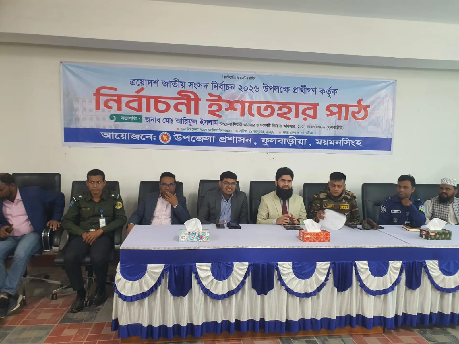 ত্রয়োদশ জাতীয় সংসদ নির্বাচনে ময়মনসিংহ ফুলবাড়িয়া আসনে প্রতিদ্বন্দ্বিতা কারী দলীয় ও স্বতন্ত্র সংসদ সদস্য প্রার্থীরা তাদের নির্বাচনী ইশতেহার ঘোষণা করেছেন। বৃহস্পতিবার ২৯ জানুয়ারি বিকেলে উপজেলা মডেল মসজিদ মিলনায়তনে অনুষ্ঠানটি অনুষ্ঠিত হয় । অনুষ্ঠানটি সভাপতিত্ব করেন উপজেলা নির্বাহী কর্মকর্তা মোহাম্মদ আরিফুল ইসলাম। অনুষ্ঠানে বিএনপি থেকে ধানের শীর্ষ প্রতীক নিয়ে নির্বাচনের অংশগ্রহণকারী আখতারুল আলম ফারুক ।জামাতে ইসলামের দাঁড়িপাল্লার পক্ষ থেকে অধ্যক্ষ কামরুল হাসান মিলন ।স্বতন্ত্র প্রার্থী আলহাজ্ব অধ্যাপক জসিম উদ্দিন সাহেব ।খেলাফত মজলিসের প্রার্থী নির্বাচনে ইশতেহার পাঠ করেন। এ আসনে মহিলা স্বতন্ত্র প্রার্থী অধ্যক্ষ আখতার সুলতানা অনুপস্থিত ছিলেন।