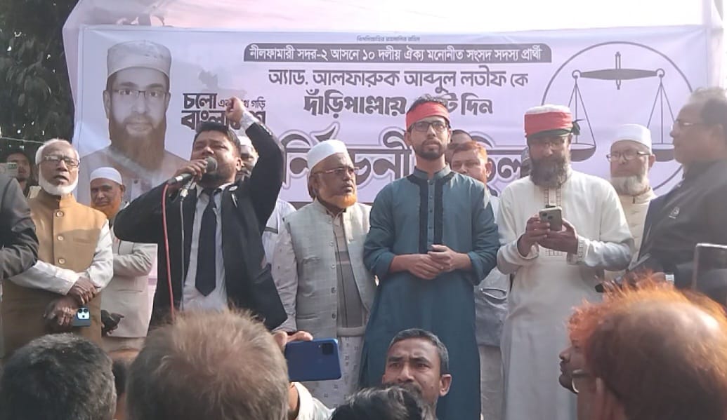 একাদশ জাতীয় সংসদ নির্বাচনকে সামনে রেখে নীলফামারী–২ আসনে জামায়াতে ইসলাম মনোনীত দাড়িপাল্লা প্রতীকের প্রার্থী অ্যাডভোকেট আল ফারুক আব্দুল লতিফ ব্যাপক গণসংযোগে ব্যস্ত । নির্বাচনী প্রচারণার অংশ হিসেবে তিনি নীলফামারী সদর উপজেলার বিভিন্ন ইউনিয়ন ও গুরুত্বপূর্ণ ভোটার অধ্যুষিত এলাকায় ধারাবাহিকভাবে গণসংযোগ চালিয়ে যাচ্ছেন।