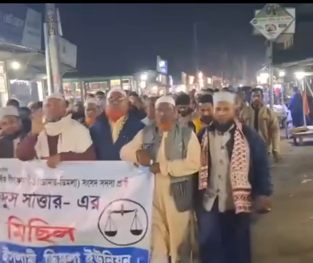 নীলফামারী ( ডিমলায় আজ ০২-০২-২৬ রোজ সোমবার বাদ মাগরিব -বাংলাদেশ জামাতে ইসলামি ডিমলা উপজেলা শাখার আয়োজনে বাংলাদেশ জামায়াতে ইসলামীর আমির ডা. শফিকুর রহমানের ডিমলায় আগমন উপলক্ষে ডিমলায় বাংলাদেশ জামায়াতে ইসলামী কর্তৃক এক বর্ণাঢ্য স্বাগত মিছিল অনুষ্ঠিত হয়েছে।স্থানীয় নেতাকর্মী ও সমর্থকদের অংশগ্রহণে মিছিলটি উৎসবমুখর পরিবেশে অনুষ্ঠিত হয়। এ সময় তারা দলীয় স্লোগান ও ব্যানার-নিয়ে আমিরের আগমনকে স্বাগত জানিয়ে বিভিন্ন স্লোগান দেন ।