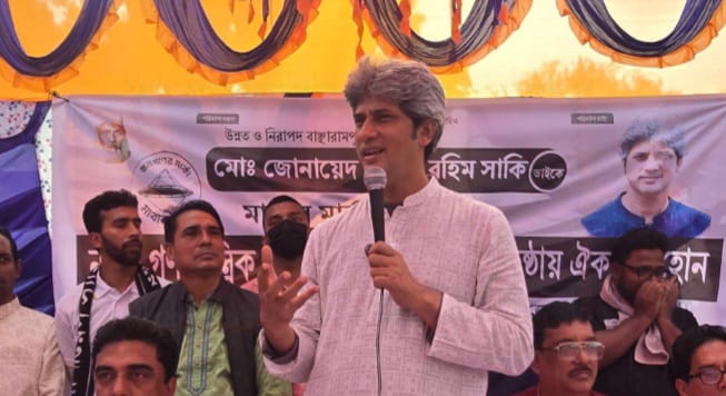 ব্রাহ্মণবাড়িয়া-৬ (বাঞ্ছারামপুর) আসনের বিএনপির দলীয় ঐক্য জোট মনোনীত প্রার্থী ও গণসংহতি আন্দোলনের প্রধান সমন্বয়ক জোনায়েদ আব্দুর রহমান সাকি বলেছেন, রাজনৈতিক প্রতিযোগিতা থাকবে, কিন্তু তা যেন সহিংসতা ও খুনোখুনির রাজনীতিতে রূপ না নেয়।রোববার (১ ফেব্রুয়ারি) উপজেলার তেজখালি ইউনিয়নের বিভিন্ন এলাকায় অনুষ্ঠিত নির্বাচনী পথসভায় তিনি বলেন, রাজনৈতিক লড়াই হবে, একে অপরকে পরাজিত করার চেষ্টা থাকবে। কিন্তু কেউ কারো গীবত করবে না, সহিংসতায় জড়াবে না। সামাজিকভাবে আমরা এসবের বিরুদ্ধে প্রতিরোধ গড়ে তুলব।তিনি আরো বলেন, নির্বাচনে কারচুপি ও কৌশলের মাধ্যমে ফল প্রভাবিত করার চেষ্টা বাঞ্ছারামপুরের মানুষ গ্রহণ করবে না। সুষ্ঠু ও গ্রহণযোগ্য নির্বাচন নিশ্চিত করতে সবাইকে ঐক্যবদ্ধ থাকার আহ্বান জানান তিনি। তিনি আরো বলেন “নির্বাচনের ব্যত্যয় ঘটলে জনগণকে সঙ্গে নিয়ে প্রতিরোধ গড়ে তোলা হবে। নিরাপদ বাঞ্ছারামপুর গড়ার অঙ্গীকার পুনর্ব্যক্ত করে তিনি বলেন,“আমরা বাঞ্ছারামপুরকে নতুনভাবে পুরো জাতির সামনে তুলে ধরতে চাই। নিরাপত্তার দিক থেকে এটি হবে বাংলাদেশের একটি রোল মডেল। আমাদের লক্ষ্য একটি বাসযোগ্য ও নিরাপদ বাঞ্ছারামপুর। নির্বাচনে অর্থের প্রভাব নিয়ে উদ্বেগ প্রকাশ করেন তিনি। “এই এলাকায় টাকার খেলার ঝনঝনানি শোনা যাচ্ছে। মানুষ কি টাকার খেলায় হেরে যাবে? ভোটের অধিকার কি টাকার কাছে তুলে দেবে? বাঞ্ছারামপুরের মানুষ টাকার খেলায় হারবে না।পথসভায় বক্তব্য রাখেন সাবেক সংসদ সদস্য এমএ খালেক পিএসসি। তিনি বলেন,জোনায়েদ সাকি একজন জাতীয় পর্যায়ের ডায়নামিক নেতা। তিনি নির্বাচিত হলে এলাকায় ব্যাপক উন্নয়ন হবে। আজ থেকে মাতলা মার্কা মানেই ধানের শীষ মাতলাকে ধানের শীষ মনে করে ভোট দিন।পথসভায় আরও উপস্থিত ছিলেন জেলা বিএনপির সদস্য ইঞ্জিনিয়ার দবির উদ্দিন, গণসংহতি আন্দোলনের স্থানীয় নেতাকর্মীসহ বিএনপির বিভিন্ন পর্যায়ের নেতাকর্মীরা