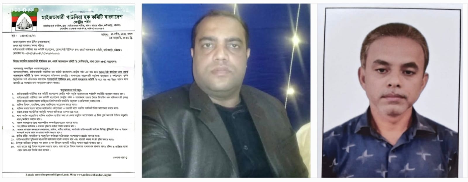 চট্টগ্রাম ফটিকছড়ির ঐতিহ্যবাহী মাইজভান্ডারী গাউসিয়া হক কমিটি বাংলাদেশ এর কেন্দ্রীয় পর্ষদ কতৃক নবগঠিত রোসাংগিরী ইউনিয়নের ৪ নং ওয়ার্ড শাখার আহব্বায়ক কমিটির অনুমোদন দেওয়া হয়। মঙ্গলবার রাতে উক্ত শাখার ফারুক চেয়ারম্যান ঘাটাস্থ খানকাতে আাগামী ১০ ই মাঘ ওরশ উপলক্ষে আয়োজিত আহ্বায়ক কমিটির প্রস্তুতি সভায় বিষয়টি নিশ্চিত করা হয়। মোহাম্মদ সুমন উদ্দিন কে আহব্বায়ক ও নুর আহম্মদ কে সদস্য সচীব করে আহব্বায়ক কমিটি টি অনুমোদন দেয়া হয়।মোহাম্মদ সুমন বলেন আহব্বায়ক কমিটি টি আগামী এক বছরের জন্য অনুমোদন দেয়া হয়েছে।এতে নবগঠিত কমিটির সিনিয়র সদস্য মো বায়েজিদ হাসান, নুরুল আলম, মোহাম্মদ জিয়া, রাকিবুল আলম, রিফাত ও অন্যান্য সদস্যরা উপস্থিত ছিলেন।