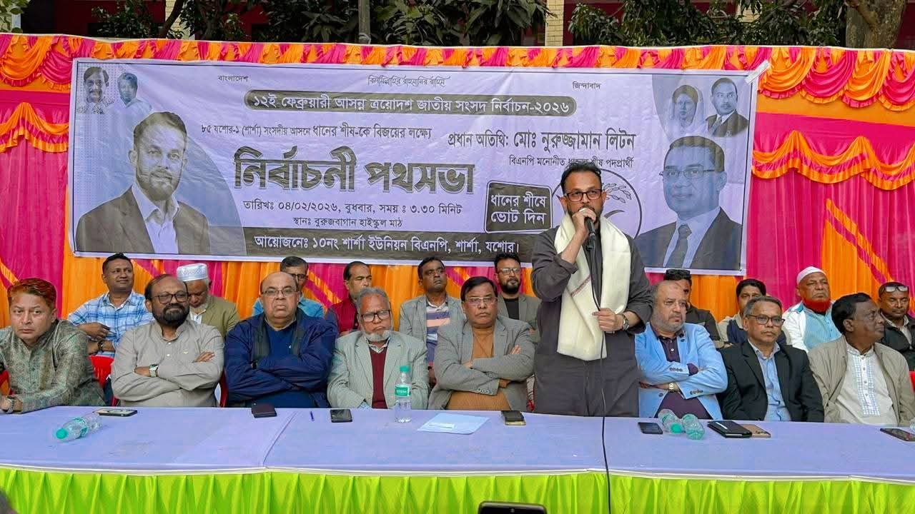 আসন্ন ত্রয়োদশ জাতীয় সংসদ নির্বাচনকে সামনে রেখে যশোর–১ শার্শা আসনে বিএনপি মনোনীত সংসদ সদস্য প্রার্থী, আলহাজ্ব নুরুজ্জামান লিটনের ধানের শীষ প্রতীকের বিজয় নিশ্চিত করার লক্ষ্যে।ইউনিয়ন ও ওয়ার্ডে নির্বাচনী প্রচারণা ও গণসংযোগ কর্মসূচি পালন করা হয়েছে।কর্মসূচির অংশ হিসেবে বিকাল ৩.৩০ মিনিটে শার্শা উপজেলার অন্তর্গত ১০নং শার্শা সদর ইউনিয়নের নাভারন ডিগ্রীকলেজ মাঠে নির্বাচনী জনসভা অনুষ্ঠিত হয়েছে । এতে প্রধান অতিথি হিসেবে উপস্থিত ছিলেন যশোর–১ শার্শা আসনের বিএনপি মনোনীত সংসদ সদস্য প্রার্থী, ধানের শীষের কান্ডারী আলহাজ্ব নুরুজ্জামান লিটন।জনসভায় আলহাজ্ব নুরুজ্জামান লিটন সরাসরি সাধারণ জনগণের সঙ্গে কুশল বিনিময় করেন এবং ধানের শীষ প্রতীকে ভোট প্রদানের আহ্বান জানান। তিনি তার বক্তব্যে বলেন, জনগণের অধিকার ফিরিয়ে দিতে ও গণতন্ত্র, পুনরুদ্ধার ও জনগণের অধিকার প্রতিষ্ঠায় এই নির্বাচন অত্যন্ত গুরুত্বপূর্ণ।আসন্ন নির্বাচনে জনগণ ভোটের মাধ্যমে বিএনপিকে রাষ্ট্রক্ষমতায় নিয়ে আসবে।আমাদের নেতা তারেক রহমান রাষ্ট্রীয় ক্ষমতায় আসলে আপনাদের সকলের জন্য একটি ফ্যামিলি কার্ড ও কৃষি কার্ড দেওয়া অঙ্গীকার করেছেন। তাই ১২ তারিখের সারাদিন ধানের শীষে ভোট দিবেন।শার্শা ইউনিয়নের বিএনপির সভাপতি উসমান আলী এর সভাপতিত্বে নির্বাচনী পথসভা অনুষ্ঠান টি শুরু হয়। সভায় বিশেষ অতিথি হিসেবে উপস্থিত ছিলেন,শার্শা উপজেলা বিএনপির উপদেষ্টা খায়রুজ্জামান মধু,উপজেলা বিএনপির সভাপতি আবুল হাসান জহির,সিনিয়র সহ সভাপতি আলহাজ্ব মহসিন কবির,সিনিয়র যুগ্ম সাধারণ সম্পাদক অ্যাডভোকেট মোস্তফা কামাল মিন্টু, যুগ্ন সাধারণ সম্পাদক কুদ্দুস আলী বিশ্বাস, সাংগঠনিক সম্পাদক আশরাফুল আলম বাবু, সাংগঠনিক সম্পাদক ২ সালাউদ্দিন আহমেদ,সহ সভাপতি আব্দুল মজিদ,শার্শা উপজেলা যুবদলের যুগ্ম আহ্বায়ক আলহাজ্ব শহিদুল ইসলাম শহীদ,উপজেলা কৃষকদলের সাধারণ সম্পাদক শাখাওয়াত হোসেন।এছাড়া আরো উপস্থিত ছিলেন, বেনাপোল পৌর বিএনপির সহ সভাপতি ইদ্রিস মালেক,শার্শা উপজেলা সেচ্ছাসেবকদল সদস্য সচিব সেলিম হোসেন আশা, বেনাপোল পৌর যুবদলের আহবায়ক মফিজুর রহমান বাবু, শার্শা উপজেলা ছাত্রদলের আহবায়ক শরিফুল ইসলাম চয়ন, সদস্য সচিব সবুজ হোসেন খান,সিনিয়র যুগ্ম আহবায়ক মোইমেনুল সাগর,বেনাপোল পৌর ছাত্রদলের আহবায়ক আরিফুল ইসলাম আরিফ এবং ১০নং শার্শা ইউনিয়ন এর সকল ওয়ার্ডের ওয়ার্ড বিএনপির সভাপতি সাধারণ সম্পাদক সহ বিএনপির সকল অঙ্গসংগঠনের নেতৃবৃন্দরা উক্ত অনুষ্ঠানে উপস্থিত ছিলেন।